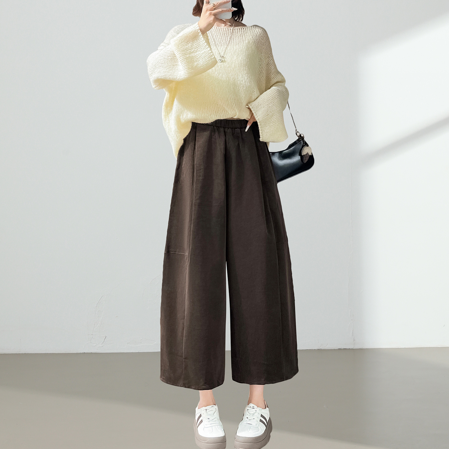 高腰宽松休闲小个子九分阔腿裤 新款 女秋冬季 黄色灯芯绒花苞灯笼裤