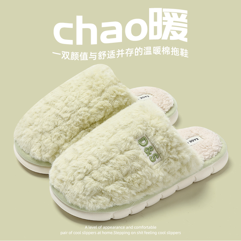 防滑毛绒情侣棉拖男静音 室内家居2025新款 软底保暖棉拖鞋 女士冬季