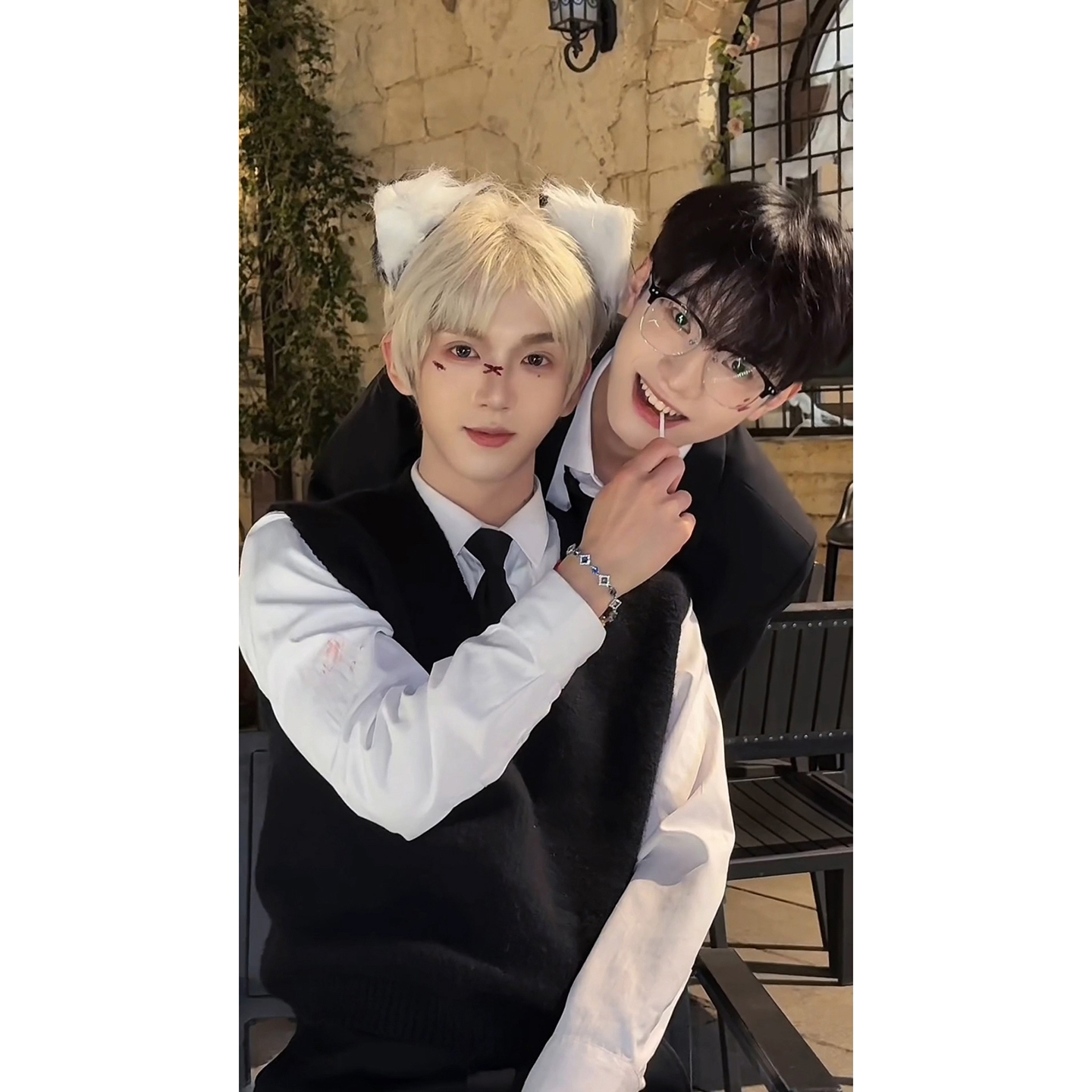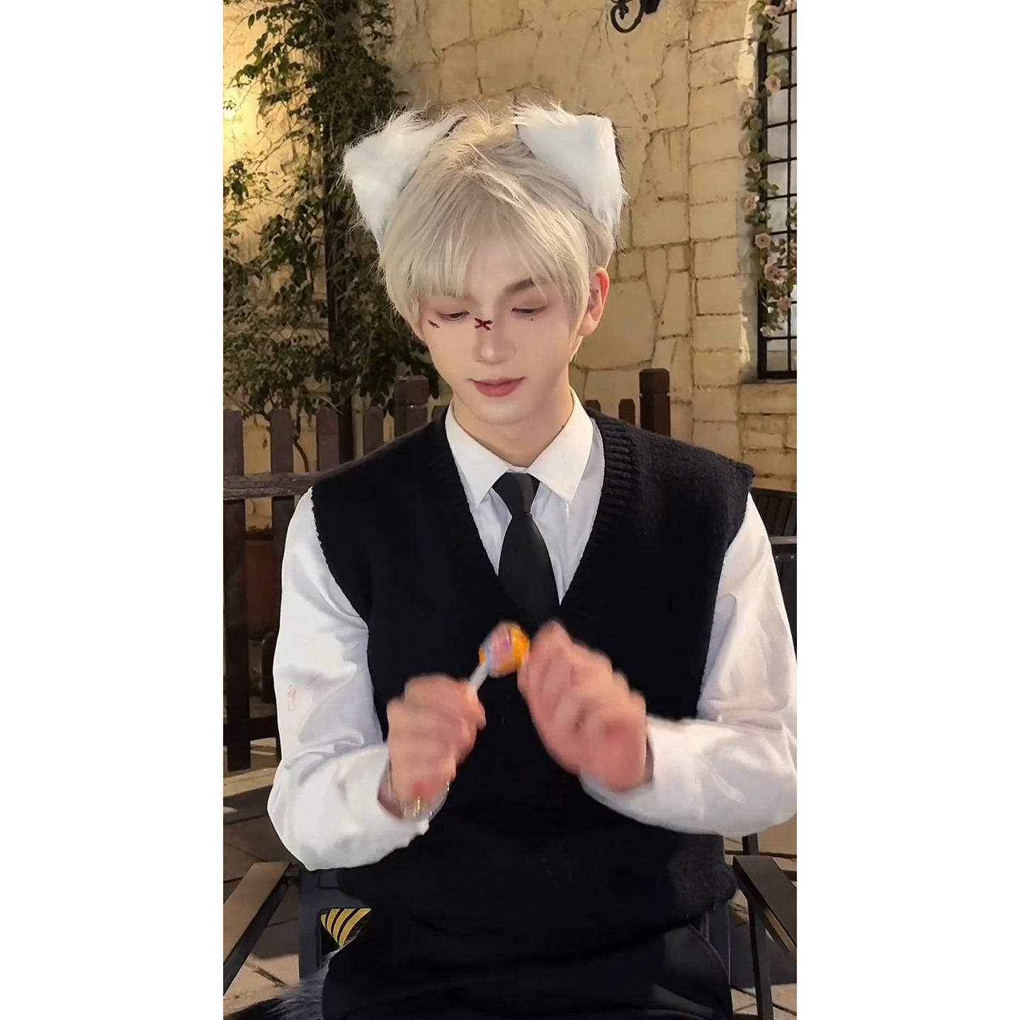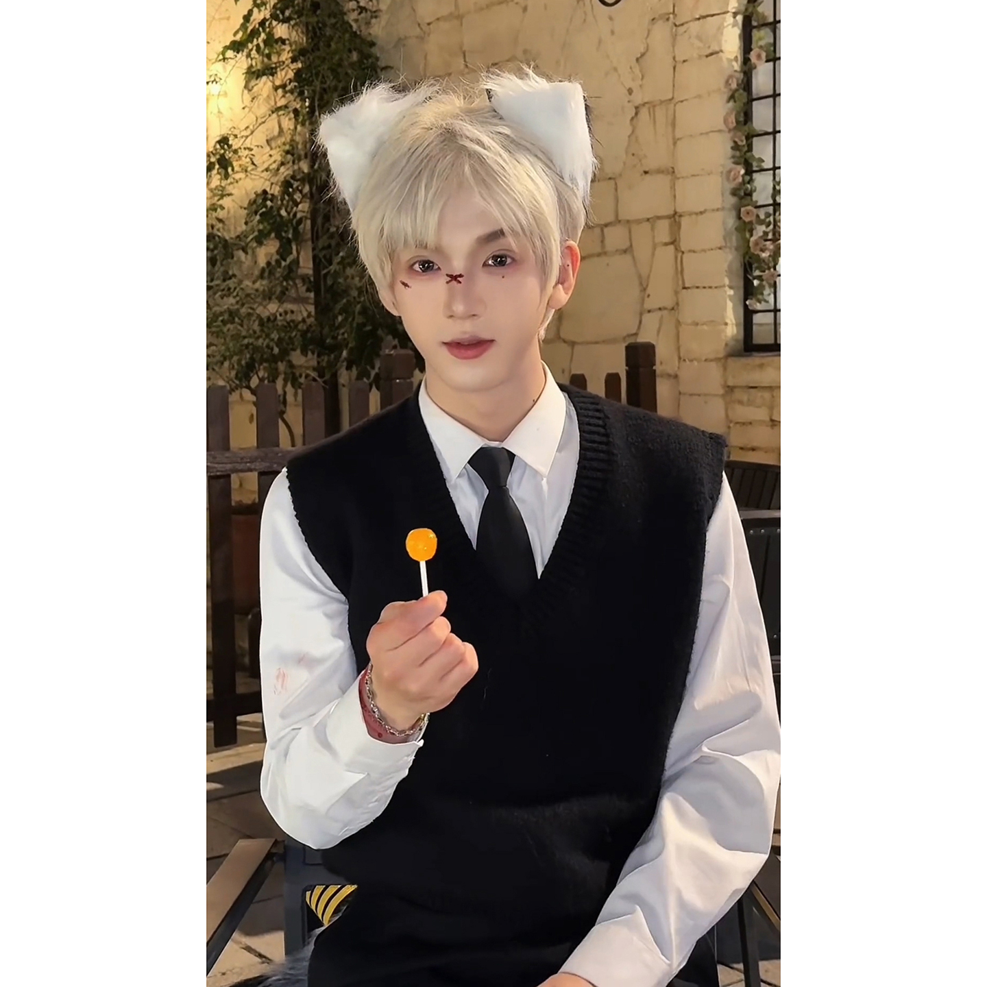 微喇西裤 日系学院风dk制服套装 男生酷帅穿搭黑色针织马甲领带衬衫
