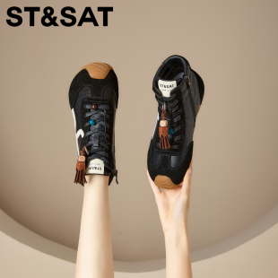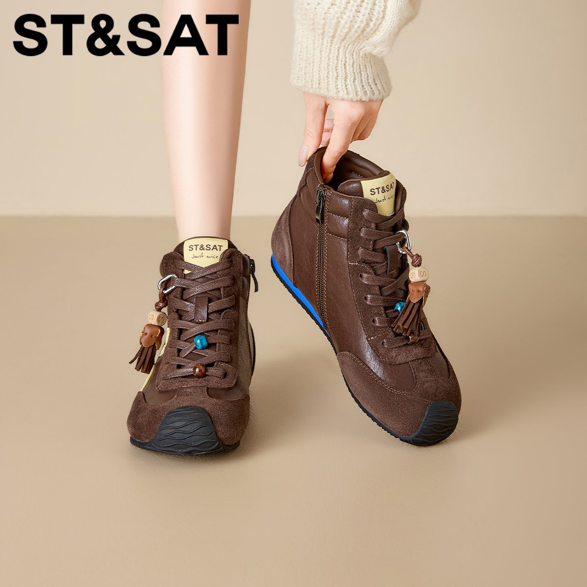 靴子 真皮防水厚底增高工装 森马马丁靴男秋季 高帮百搭休闲白色板鞋