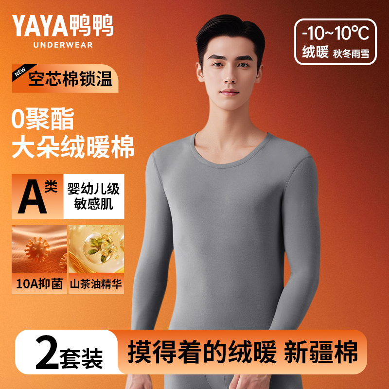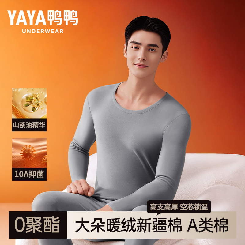 纯棉冬季 套装 内穿打底薄款 棉毛衫 冬 鸭鸭秋衣秋裤 保暖内衣男士 男士
