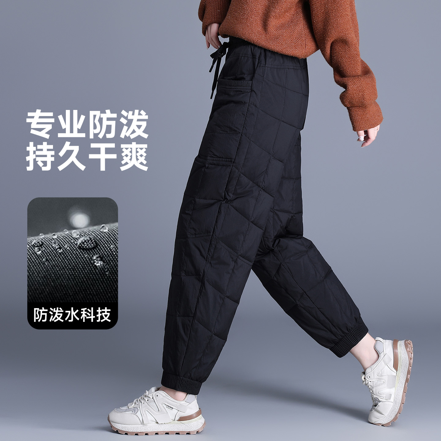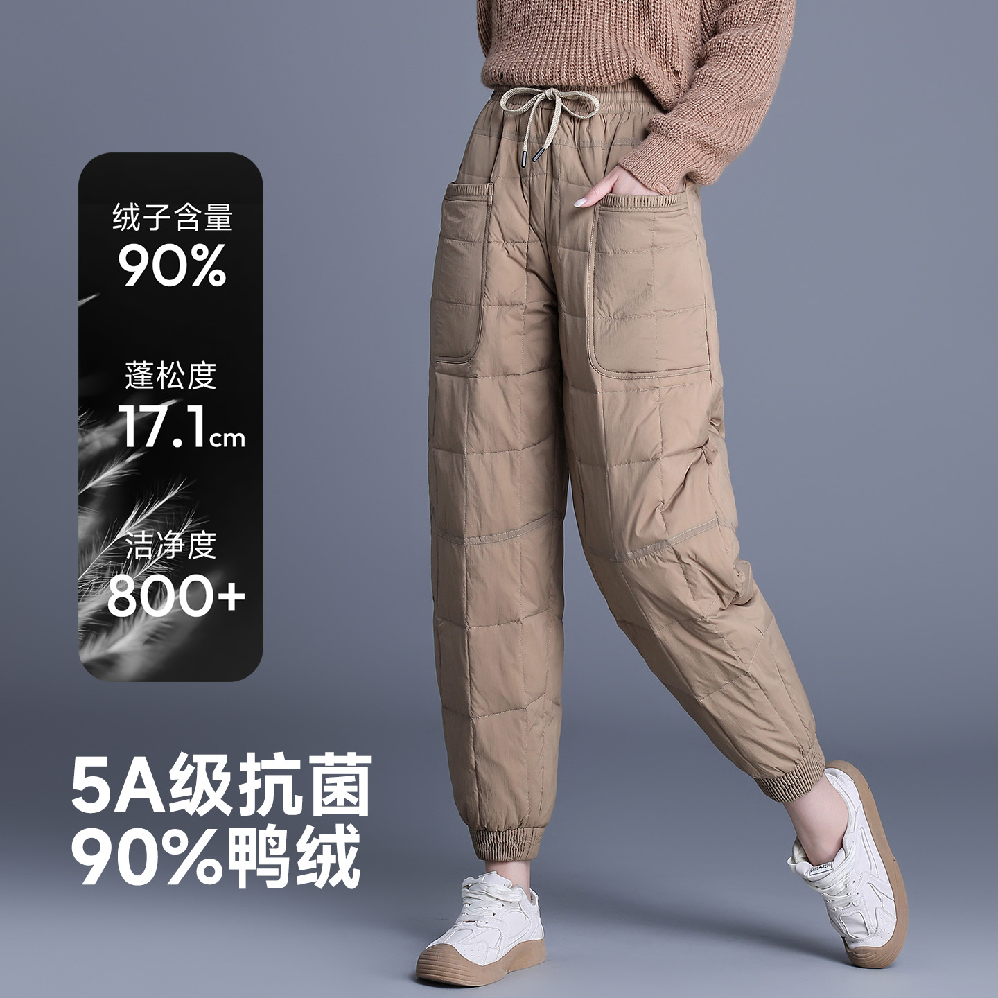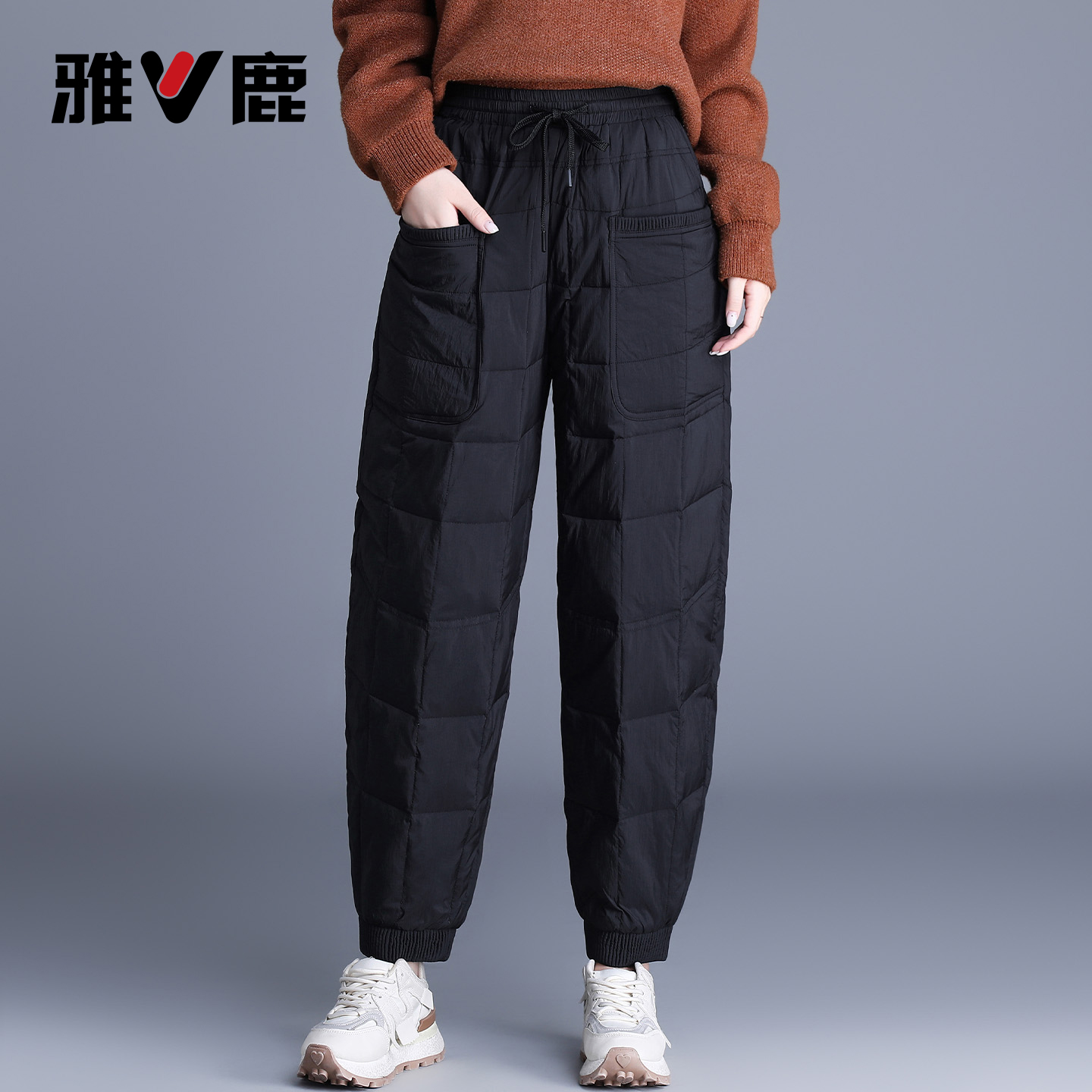 女士保暖显瘦休闲九分萝卜裤 加厚束脚羽绒裤 女 新款 雅鹿2025年冬季