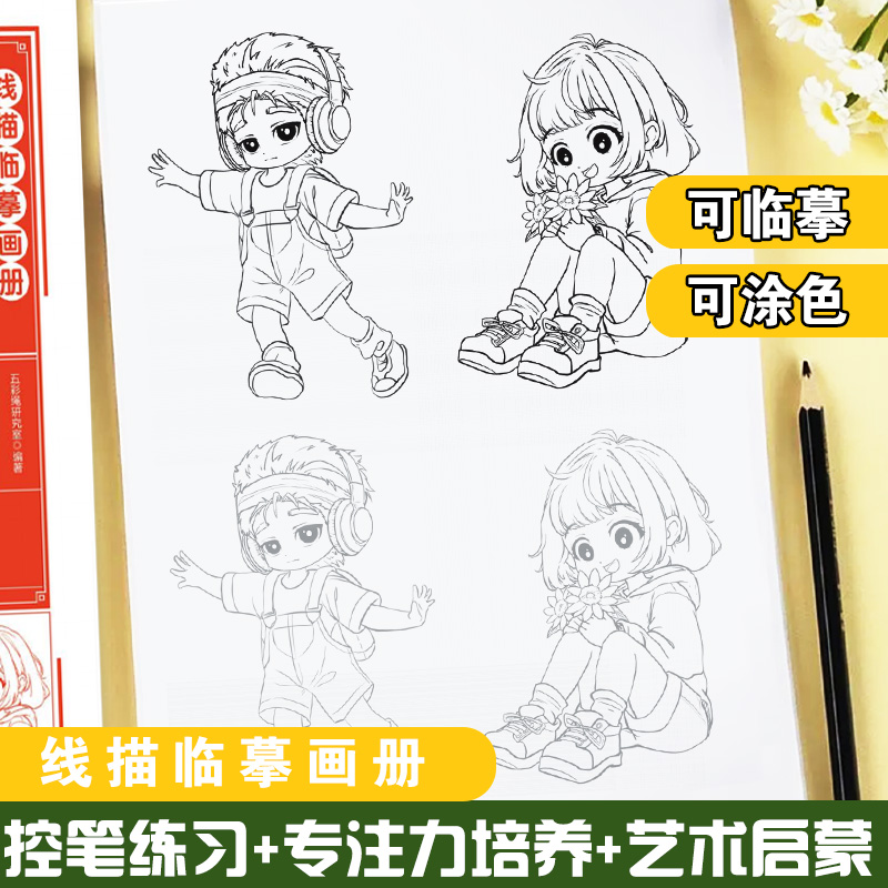 线描临摹画册漫画入门手绘描摹本动漫人物线稿描绘儿童描画美少女古风人物绘画画画基础自学教程指南白描素描临摹卡通素描书教材Q