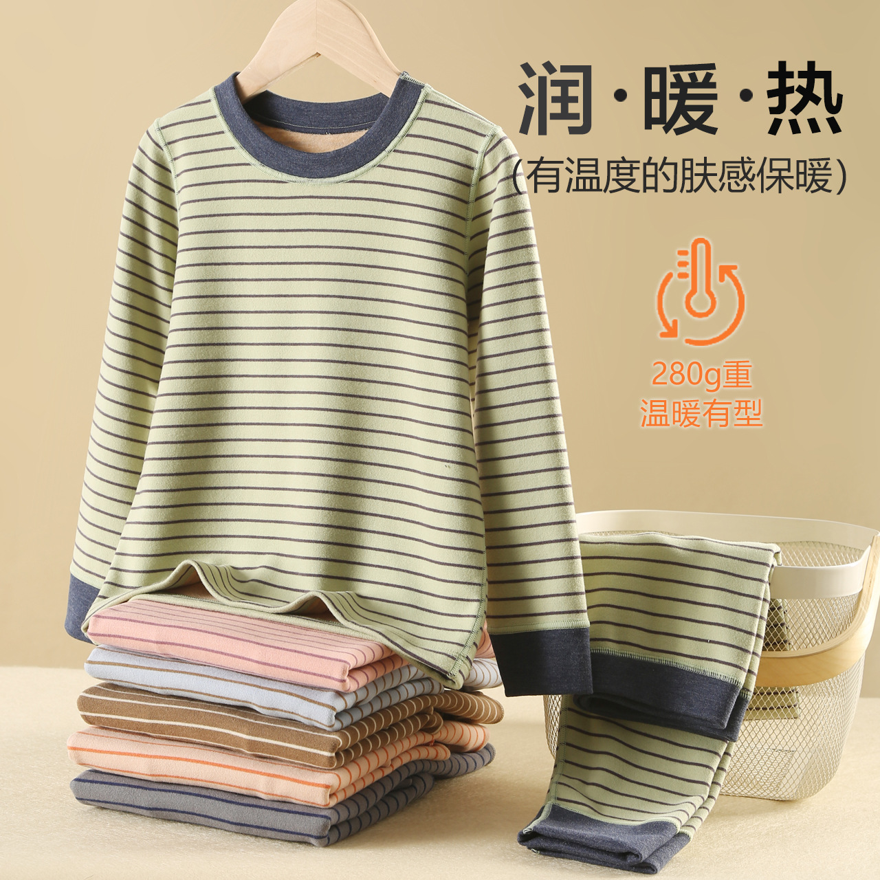 儿童a类保暖蚕丝羊毛秋冬家居服男女童无骨睡衣套装 宝宝秋衣秋裤