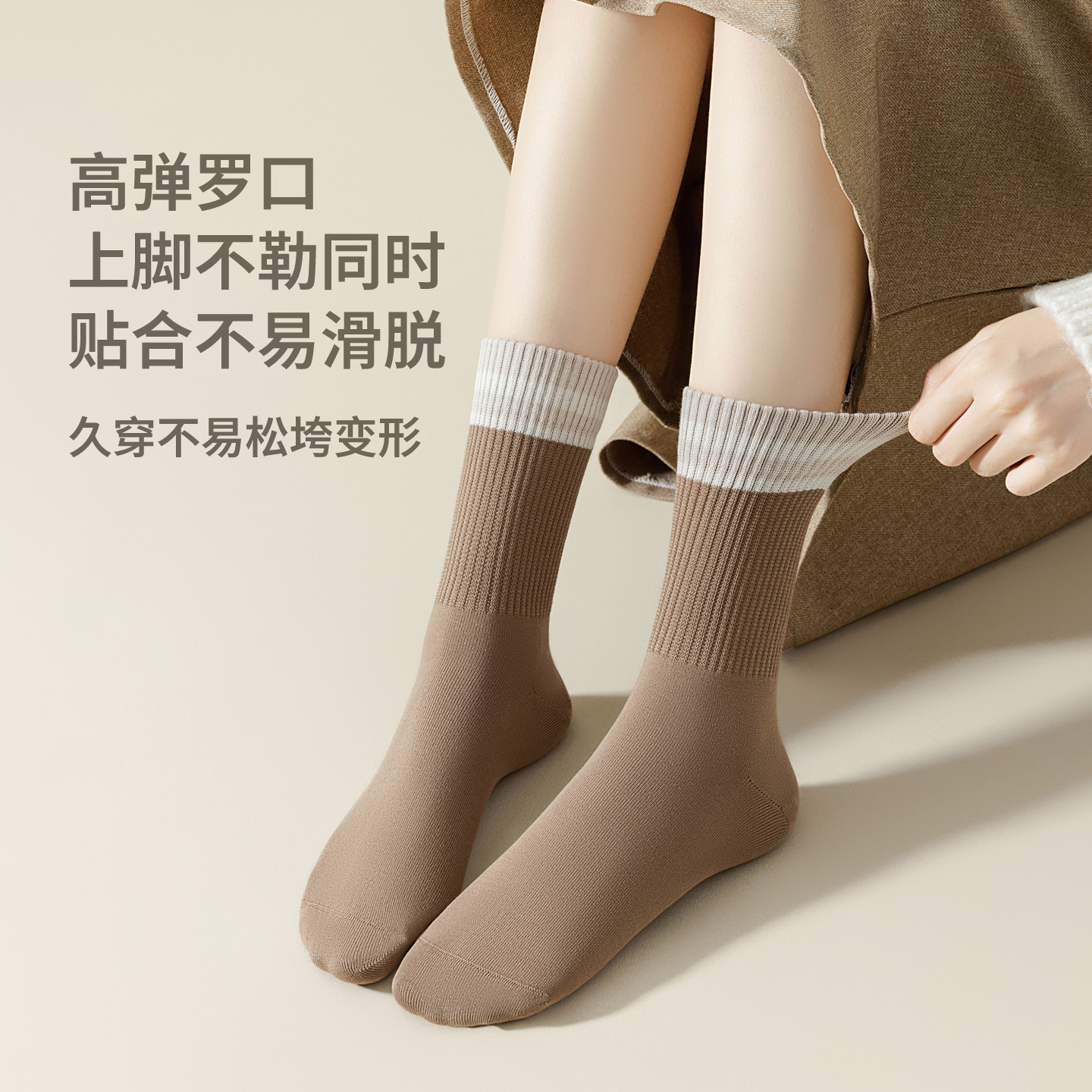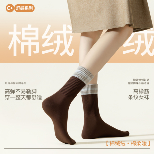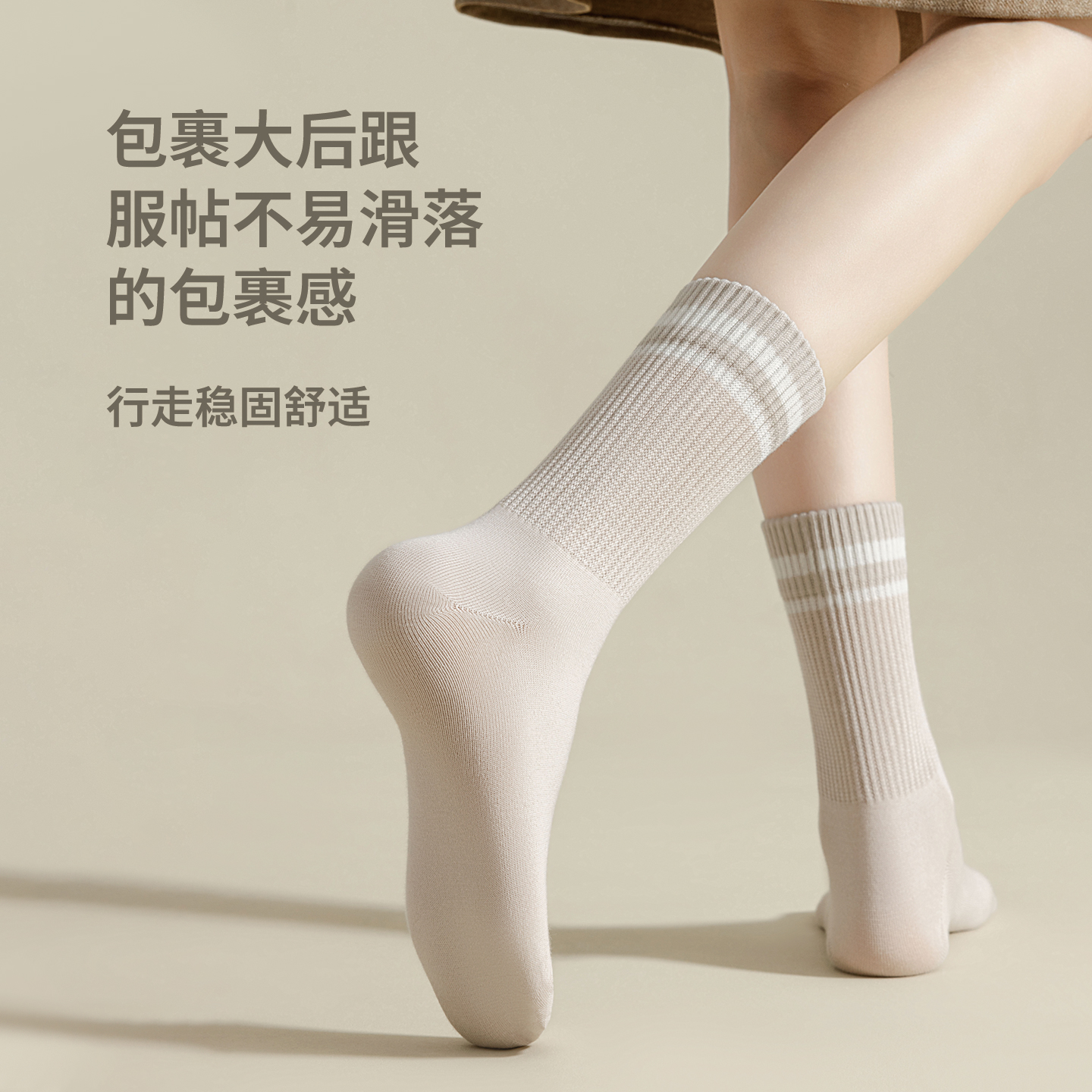 亲相见袜子女纯棉防臭高筒袜10A抗菌透气吸汗条纹百搭女士中筒袜