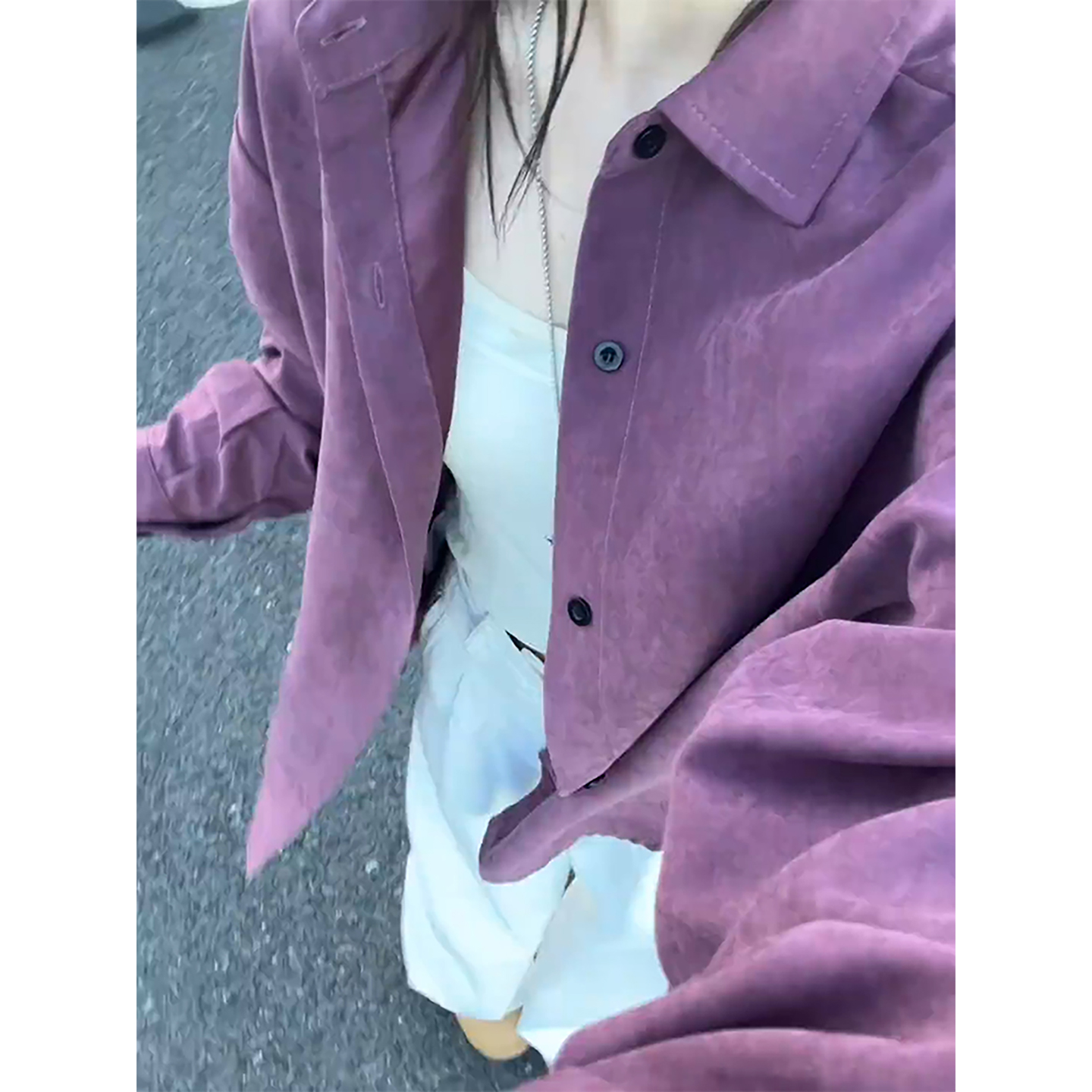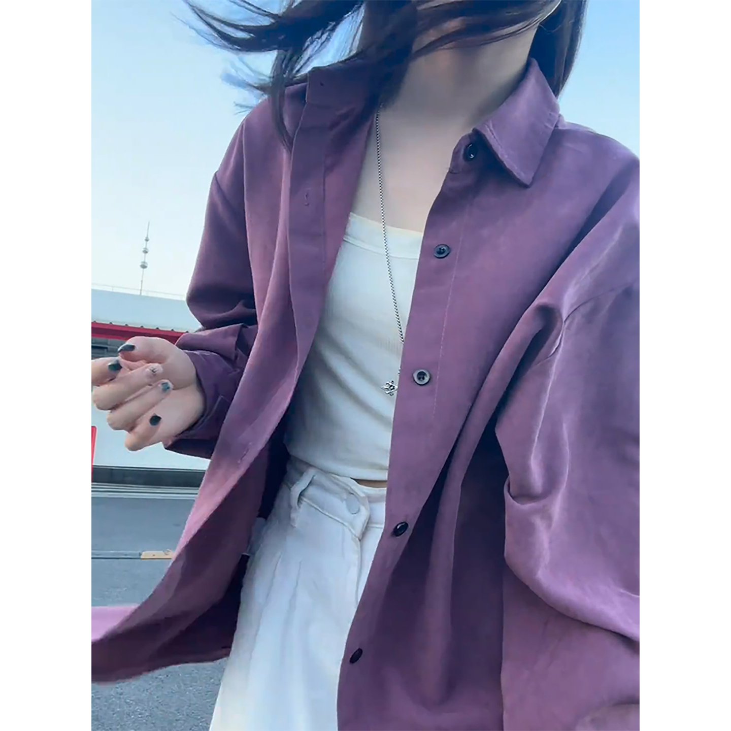男秋季 衬衫 内搭叠穿衬衣宽松慵懒垂感外套 vintage长袖 乌梅紫美式