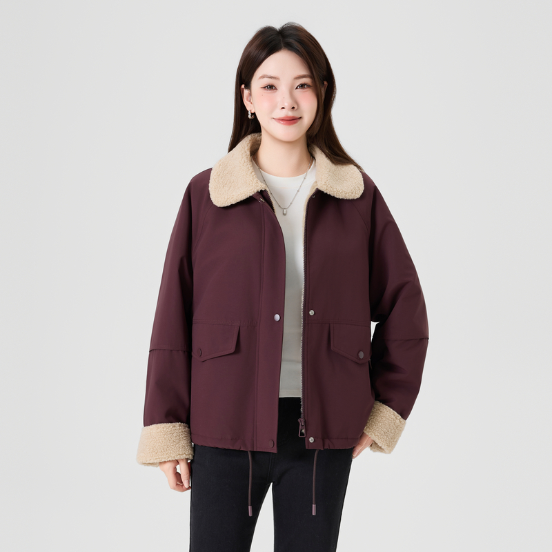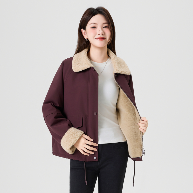 快鱼加绒翻领夹克2025年冬季 休闲百搭毛领外套羊羔毛防风上衣 新款