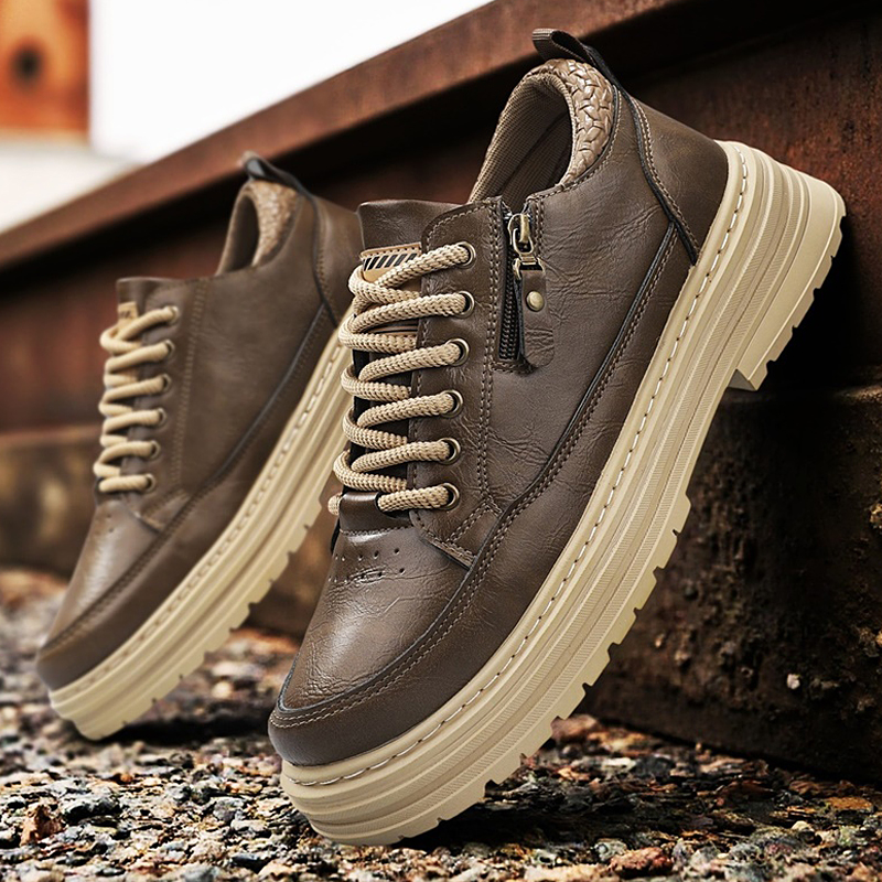 潮鞋 男鞋 皮面工作上班黑色工装 男士 秋冬防滑英伦复古低帮马丁板鞋