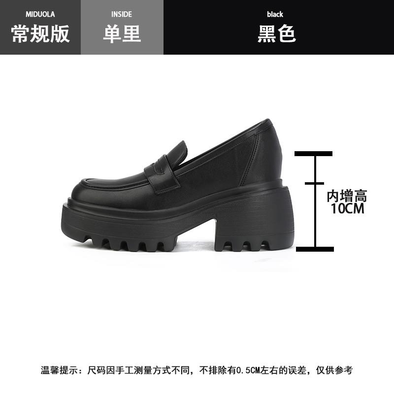 黑色厚底小皮鞋 推荐 女2025新款 小个子内增高乐福鞋 一脚蹬 牛皮版