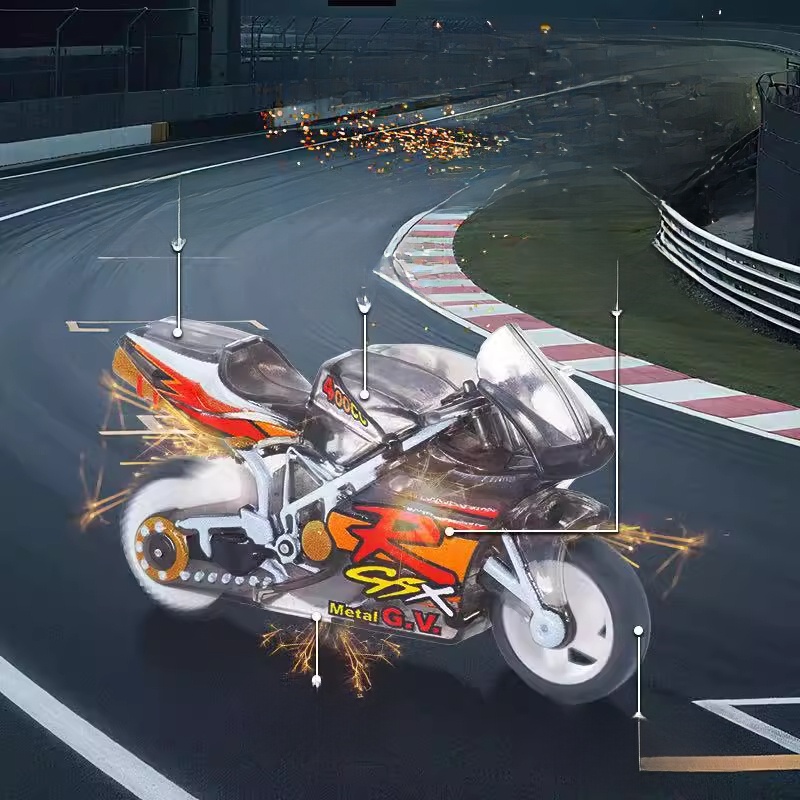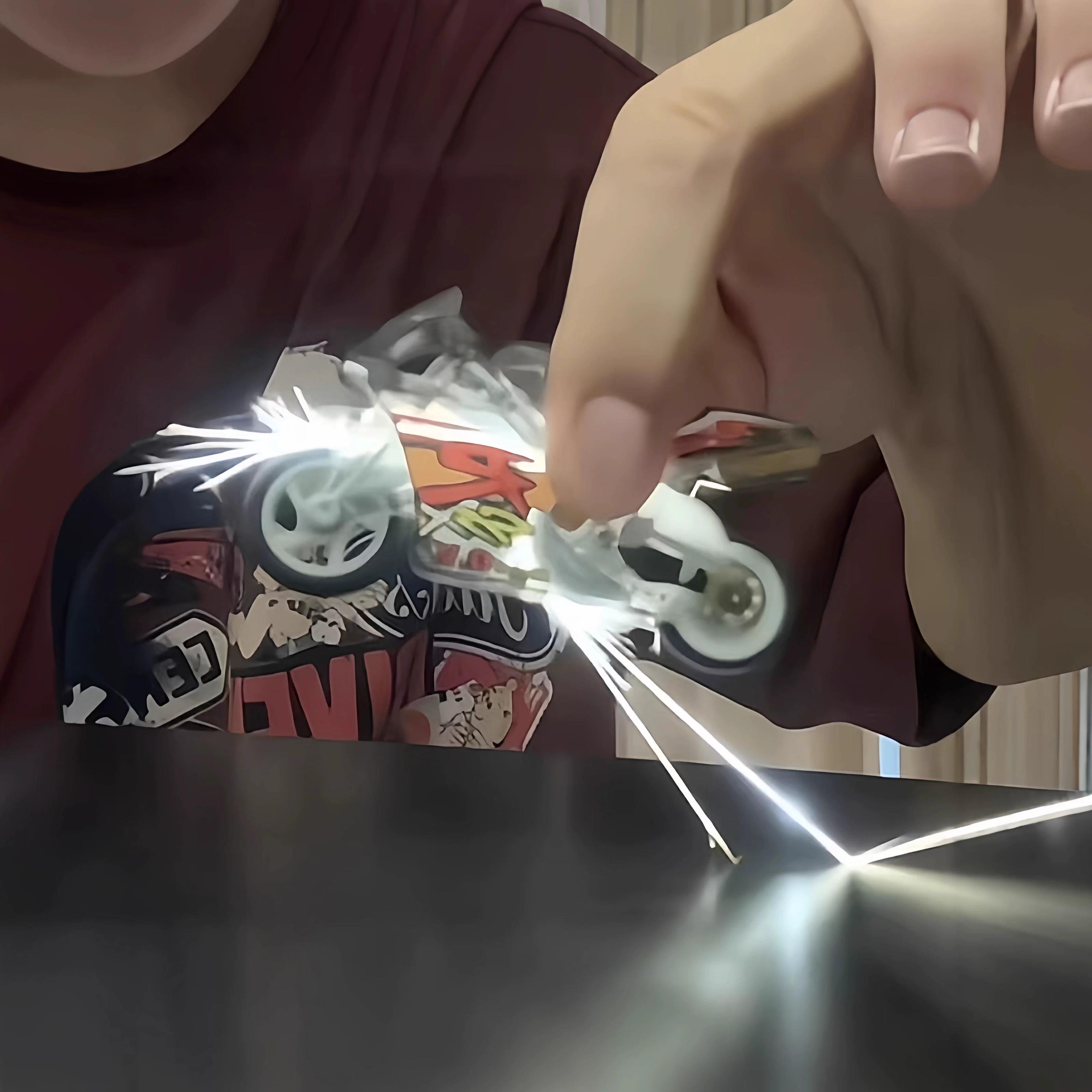 呲火花摩托车玩具彷真摩托机甲回力惯性车创意火石闪光滑行玩具车