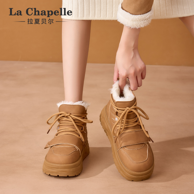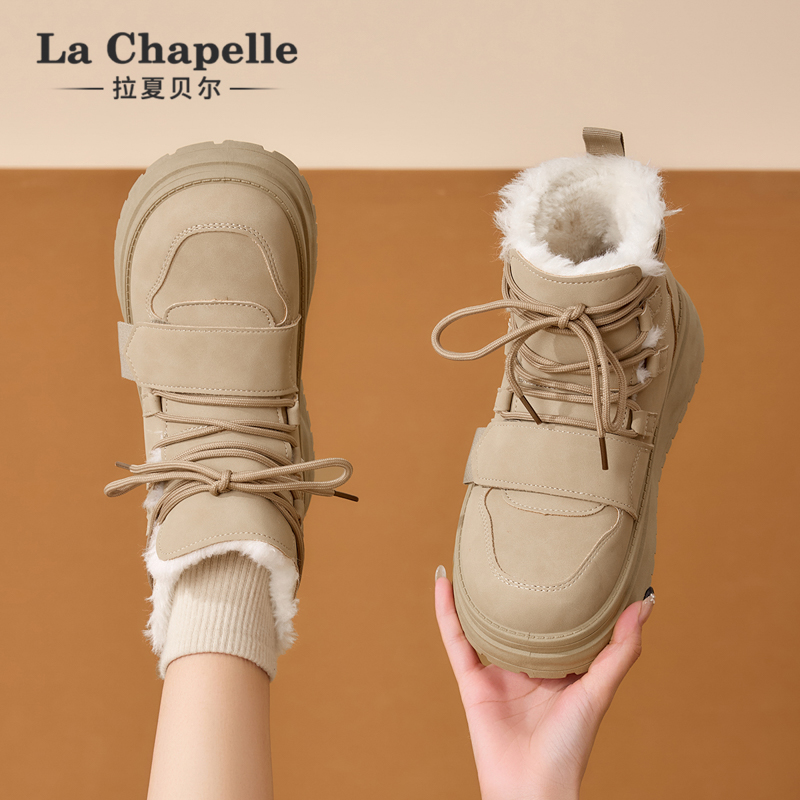 外穿马丁靴 加绒加厚百搭保暖棉鞋 拉夏贝尔厚底雪地靴2025冬季 新款