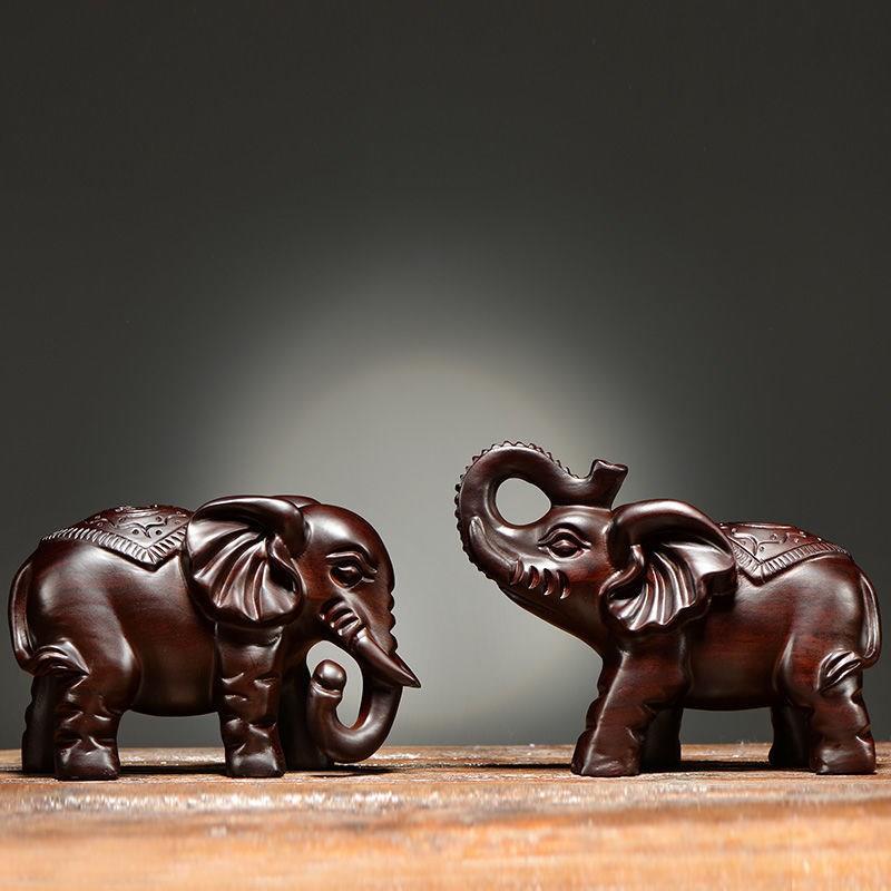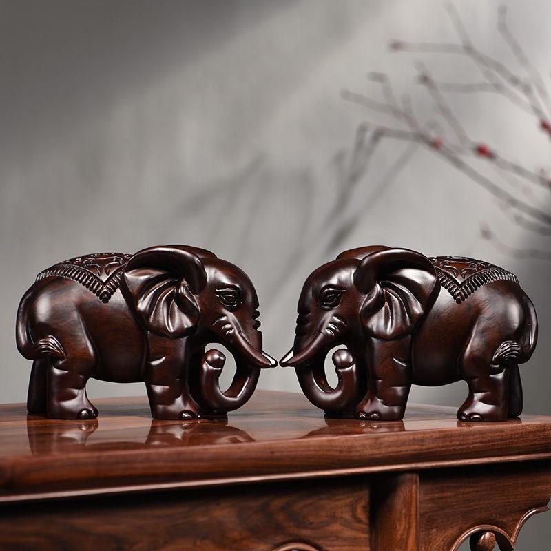 黑檀木雕大象摆件实木一对招财象木制家居风水摆件红木质工艺礼品