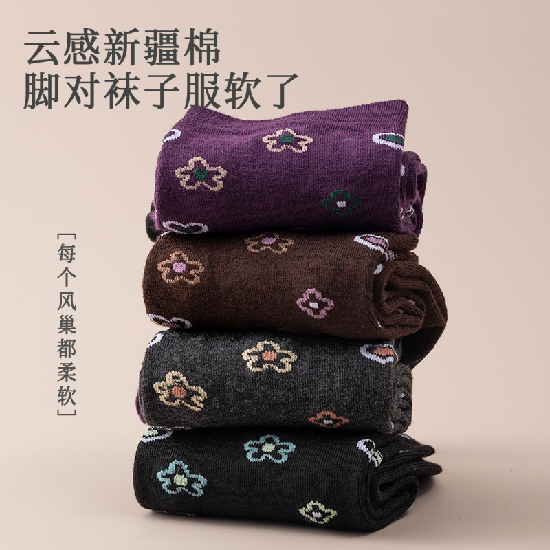 春秋抗菌防臭加厚中筒袜 爆款 袜子女士纯棉加长筒秋冬季 2025新款