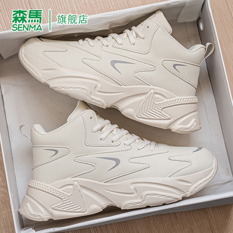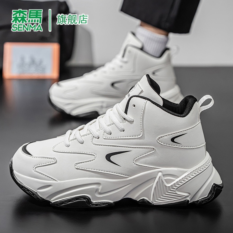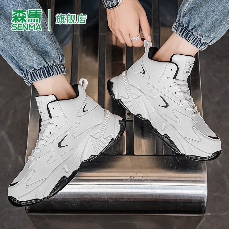 运动休闲白色百搭老爹增高厚底高帮鞋 森马男鞋 潮鞋 冬季 2025新款