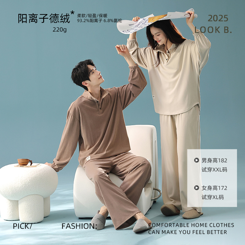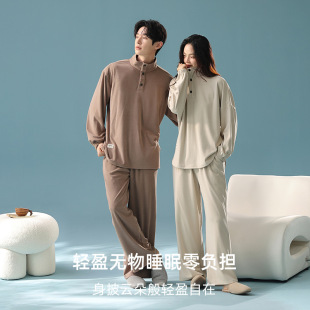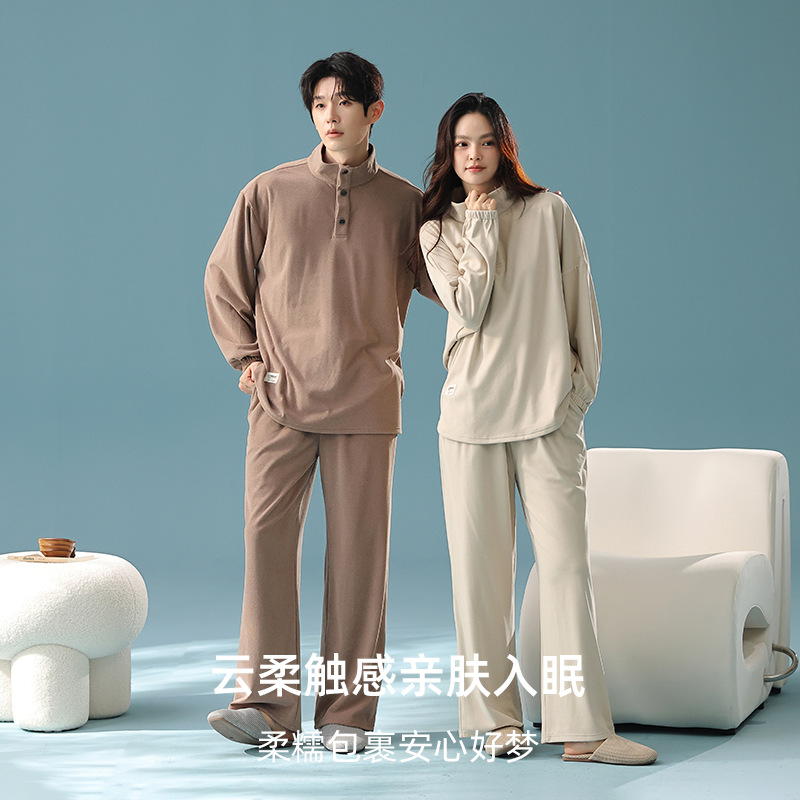 全棉家居服套装 芬腾情侣睡衣女春秋款 圆领套头男大码 男士 纯棉长袖