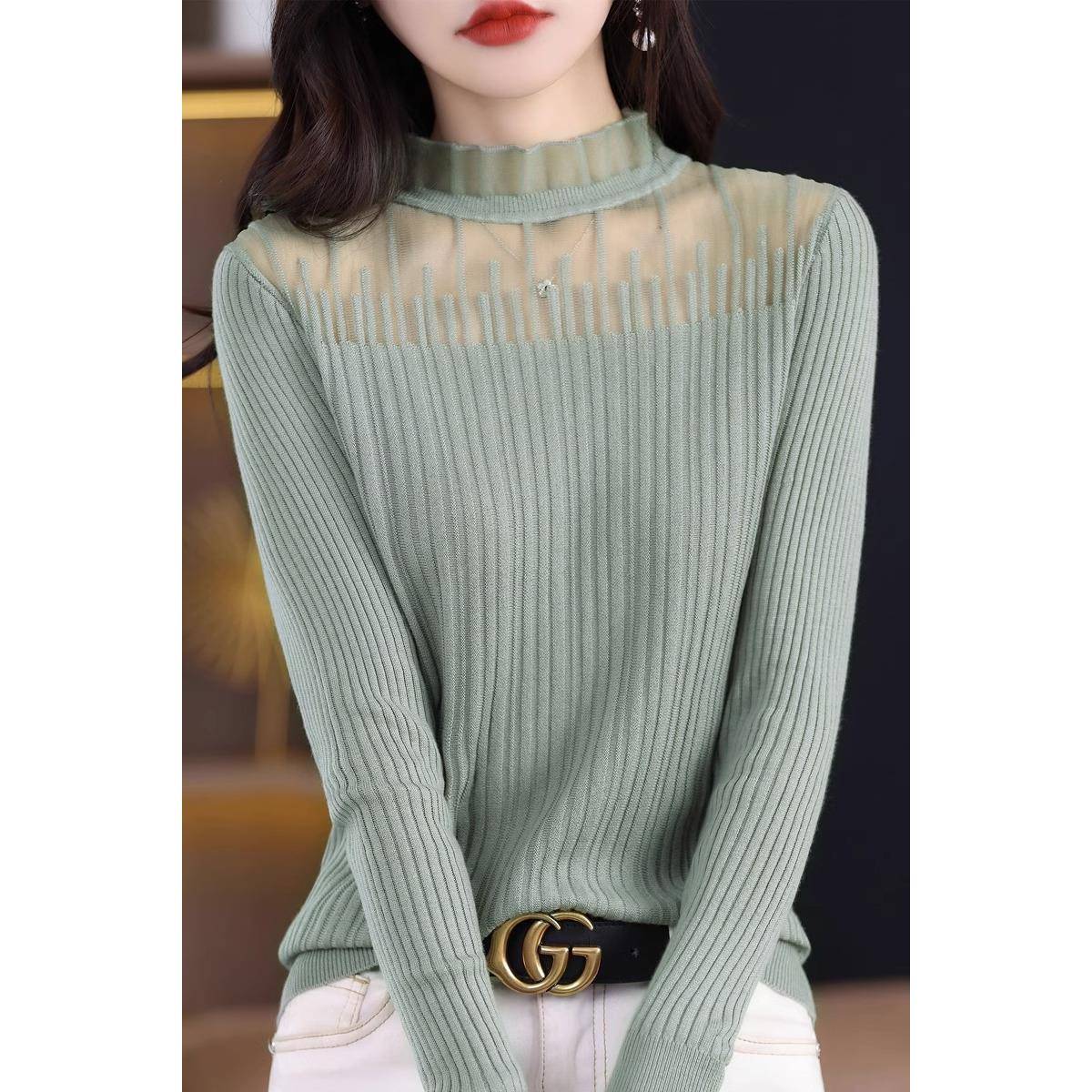 修身 秋冬半高领打底衫 洋气毛衣针织衫 时尚 内搭蕾1011r 女2025新款