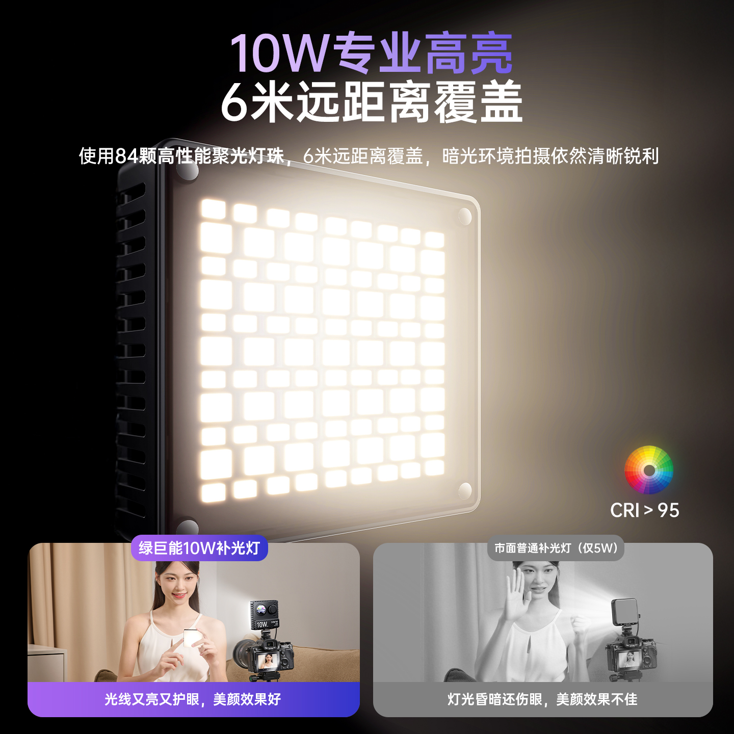 绿巨能10W相机热靴补光灯便携式 拍摄专用口袋富士佳能r50相机补光灯r10索尼尼康摄影拍照小型迷你便携闪光灯