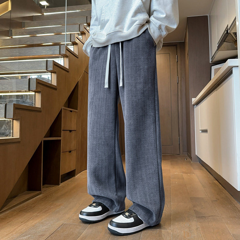 2025新款 肌理感麦穗纹直筒裤 阔腿休闲长裤 春秋宽松灰色卫裤 子男款