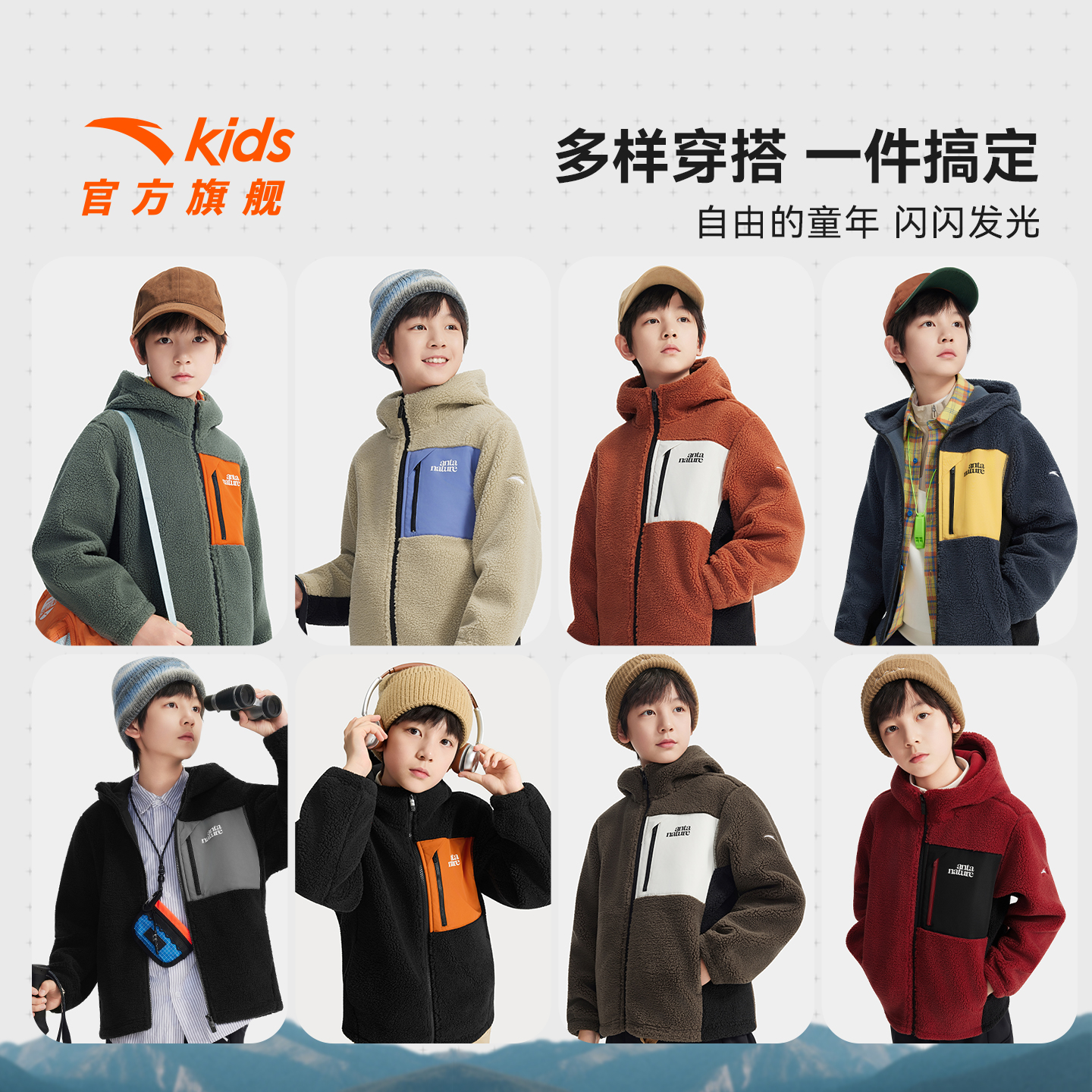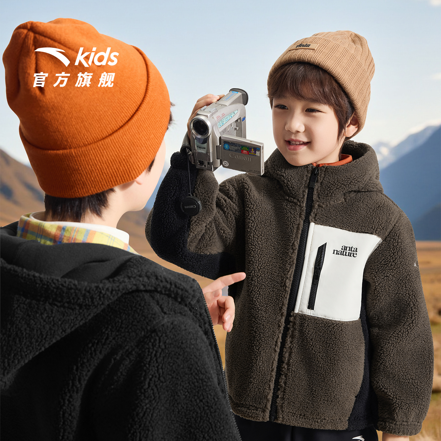 安踏儿童男童针织羊羔绒外套2025冬季 舒适保暖中大童连帽外套 新款
