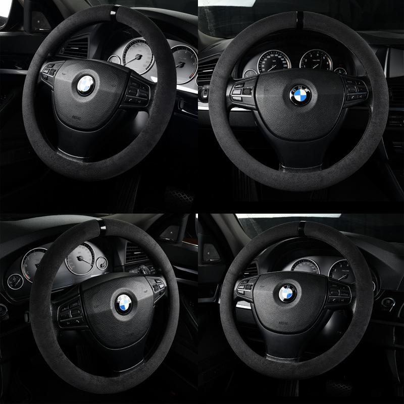 汽车方向盘套四季 通用型麂皮绒翻毛皮车把套防滑吸汗透气车载内饰