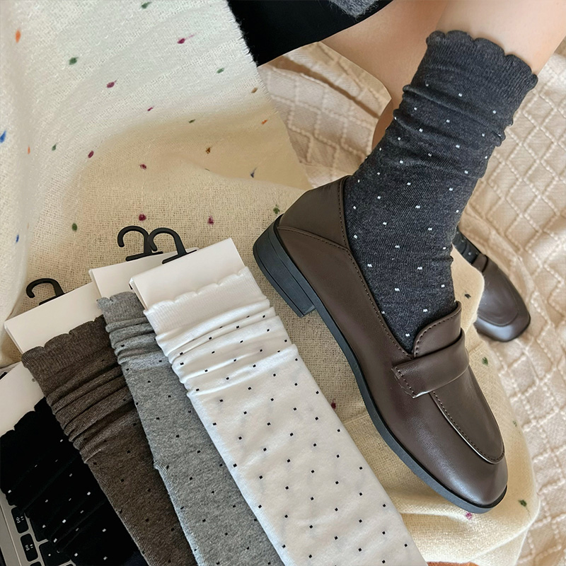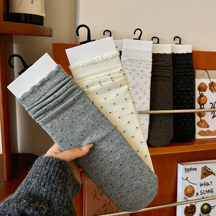 潮流百搭美腿花边女袜柔软亲肤抗菌防臭纯棉袜子女款 百搭袜 春秋季