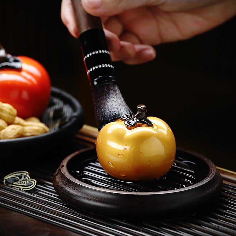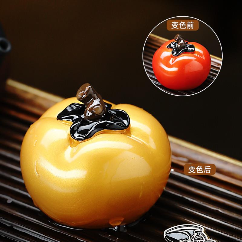 变色茶宠创意柿子可养仿真水果好柿花生茶具摆件茶盘装 饰茶玩如意