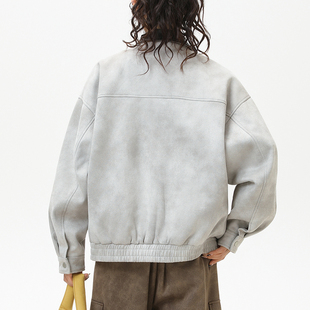 男生早秋穿搭pu皮翻领美式 潮流oversize痞帅情侣外套 夹克2025新款