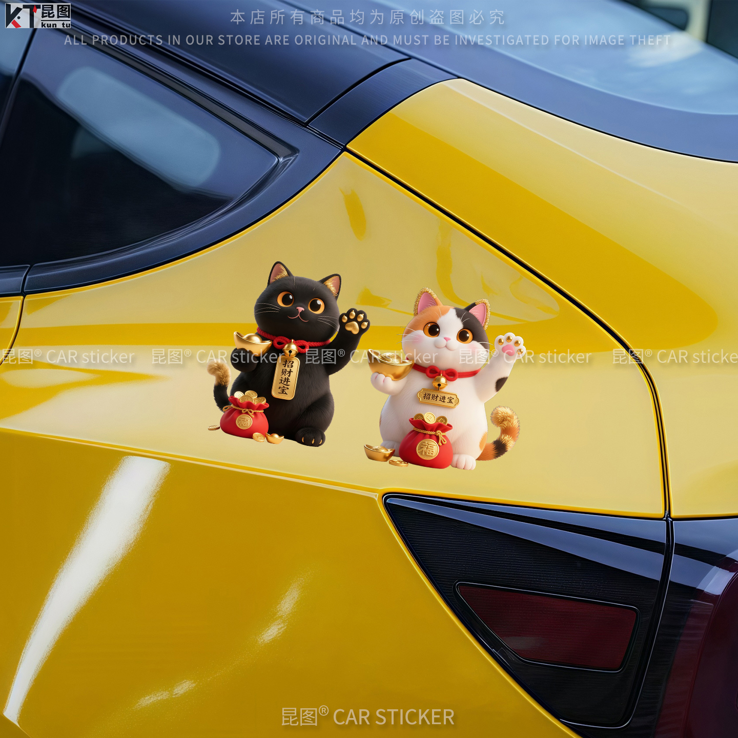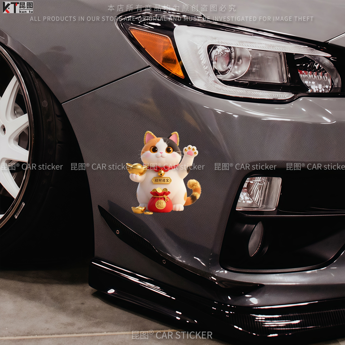 日系JDM招财猫汽车贴纸电动摩托车身装 饰笔记本行李箱遮挡划痕贴