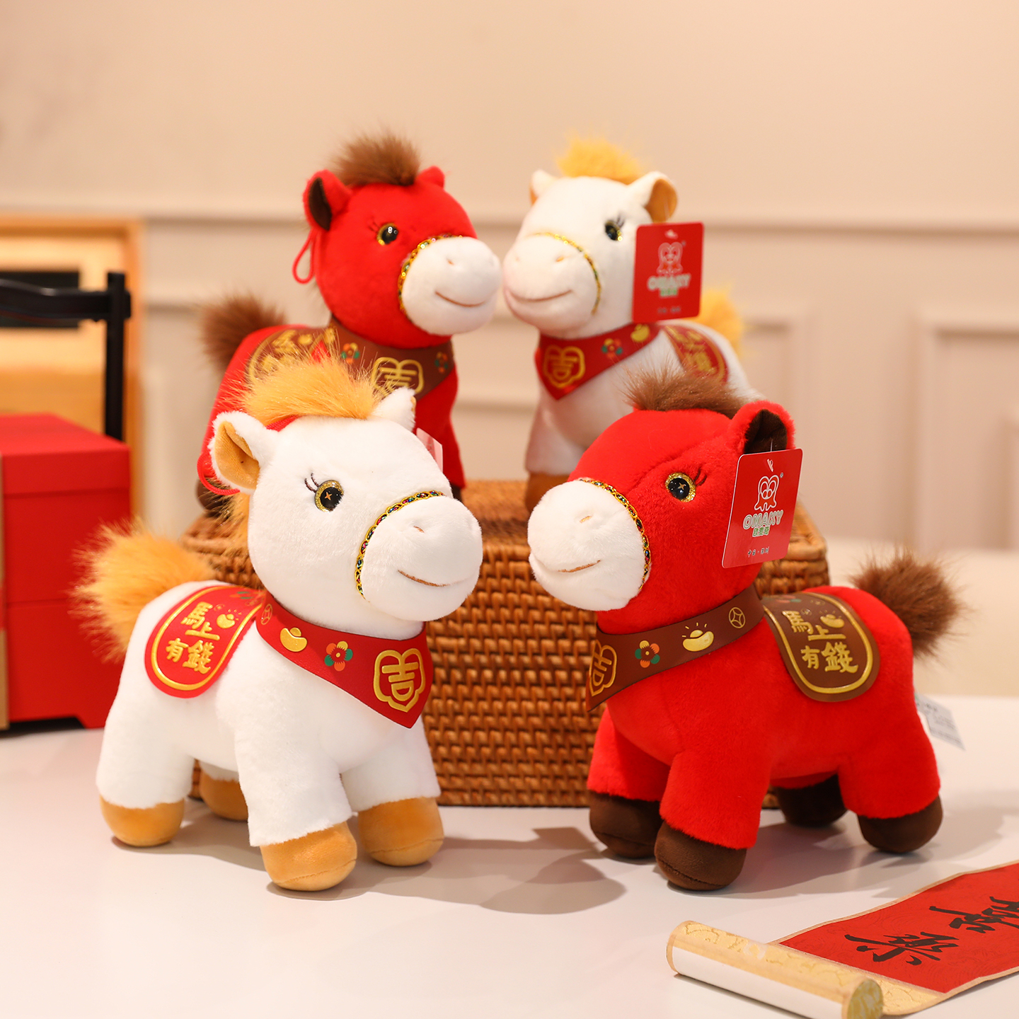 马年吉祥物公仔生肖马毛绒玩具马上有钱玩偶娃娃新年礼物定制logo