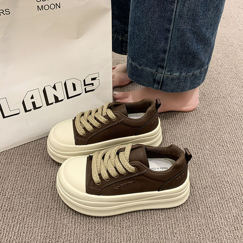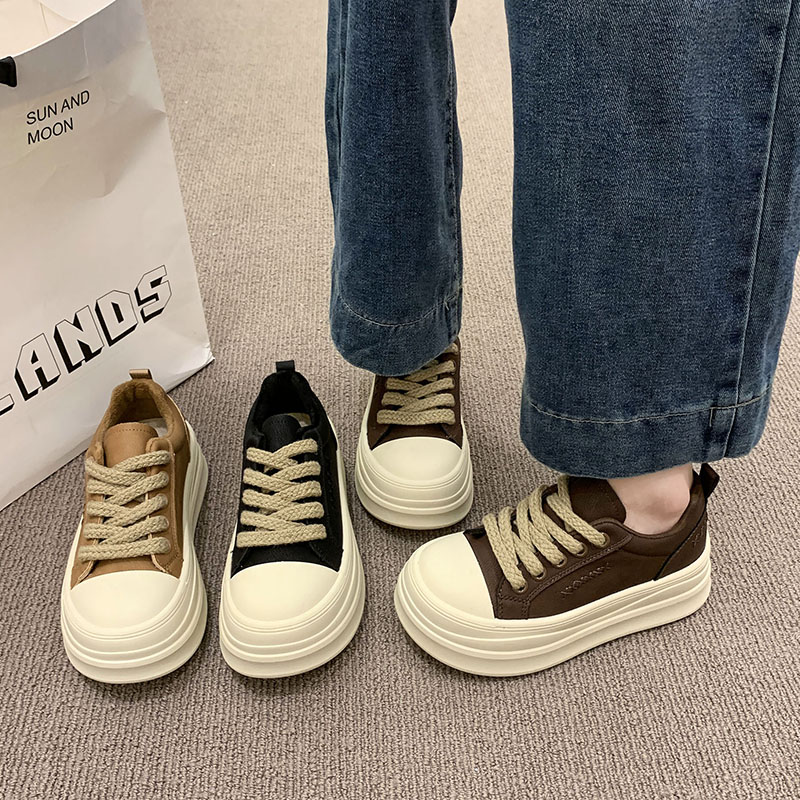 厚底百搭增高不累脚休闲运动板鞋 新款 女2025秋冬季 加绒大头面包鞋
