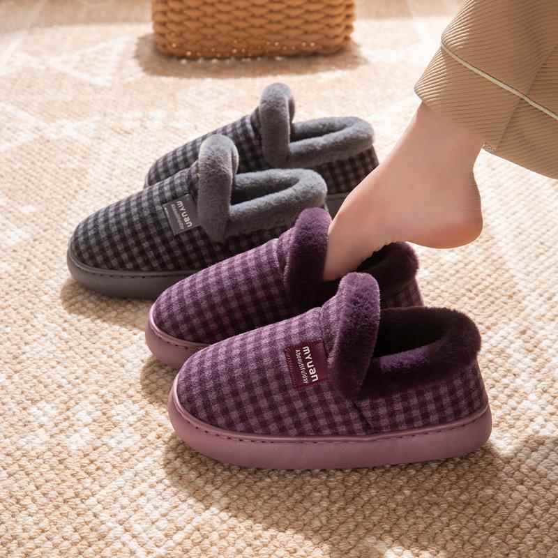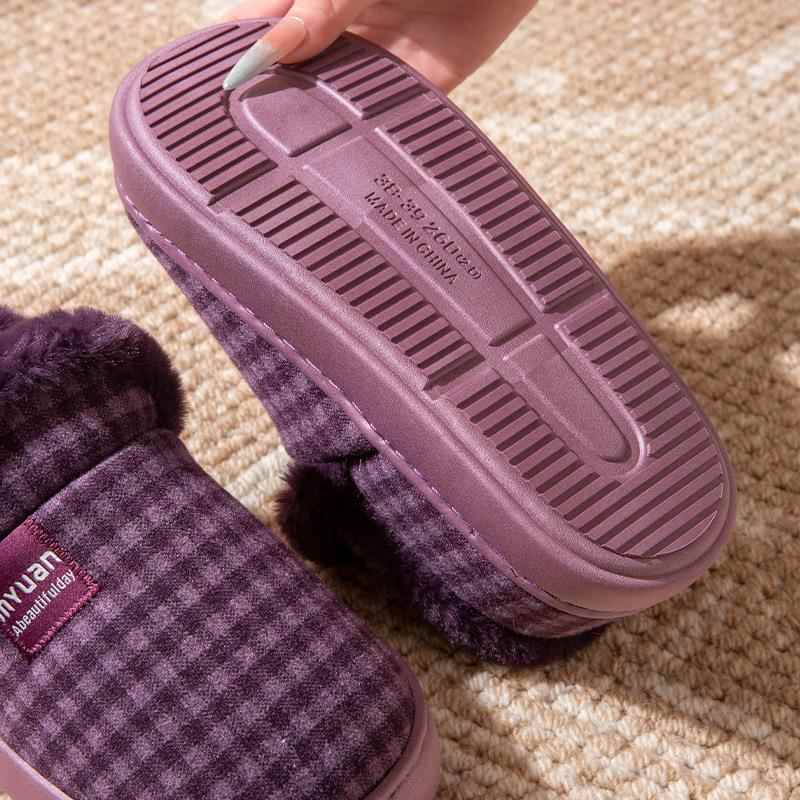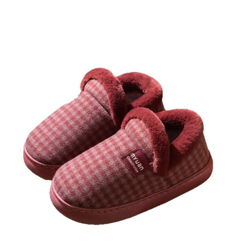 男士 加绒加厚保暖防滑情侣居家外穿毛毛包跟棉拖鞋 女冬季 老人棉鞋