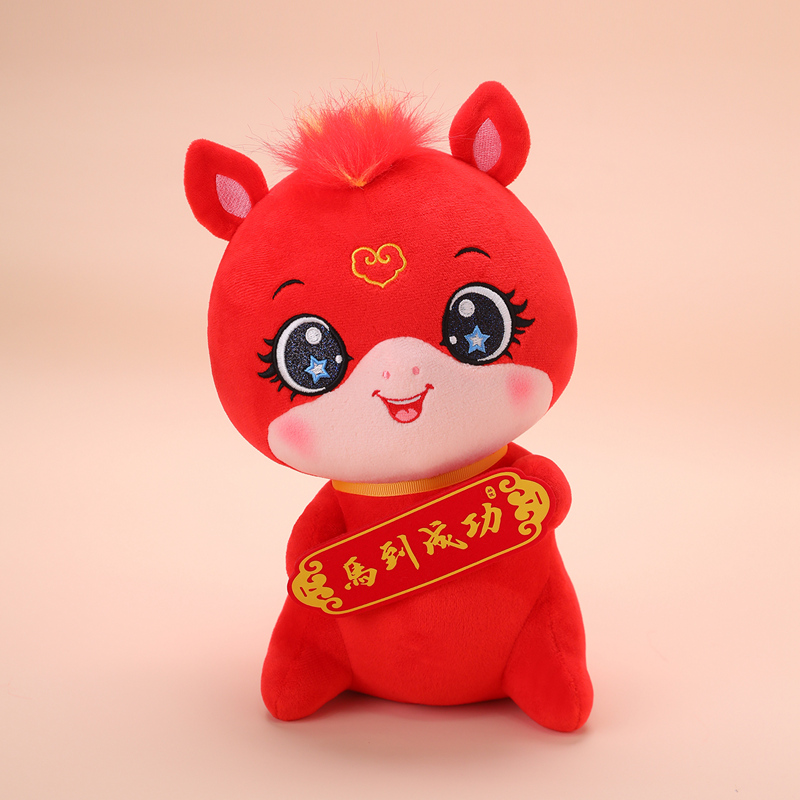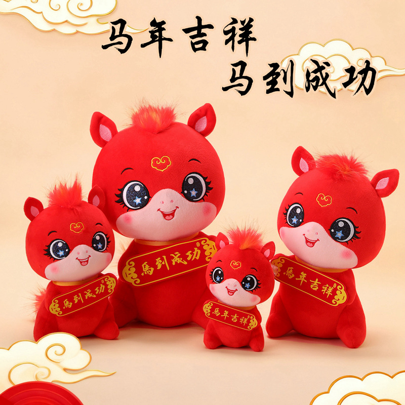 2025马年吉祥物公仔生肖小红马布娃娃毛绒玩具新年会玩偶礼物定制
