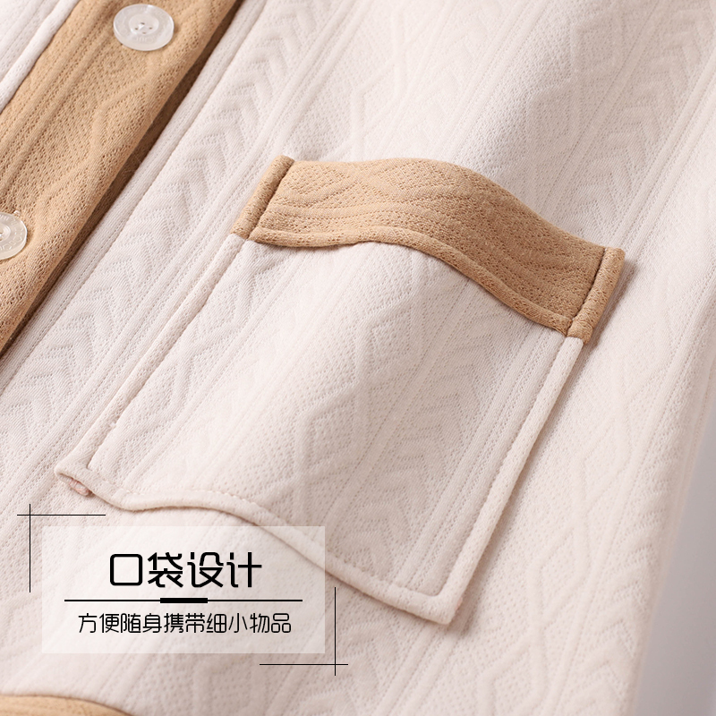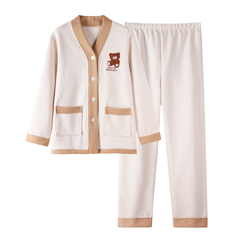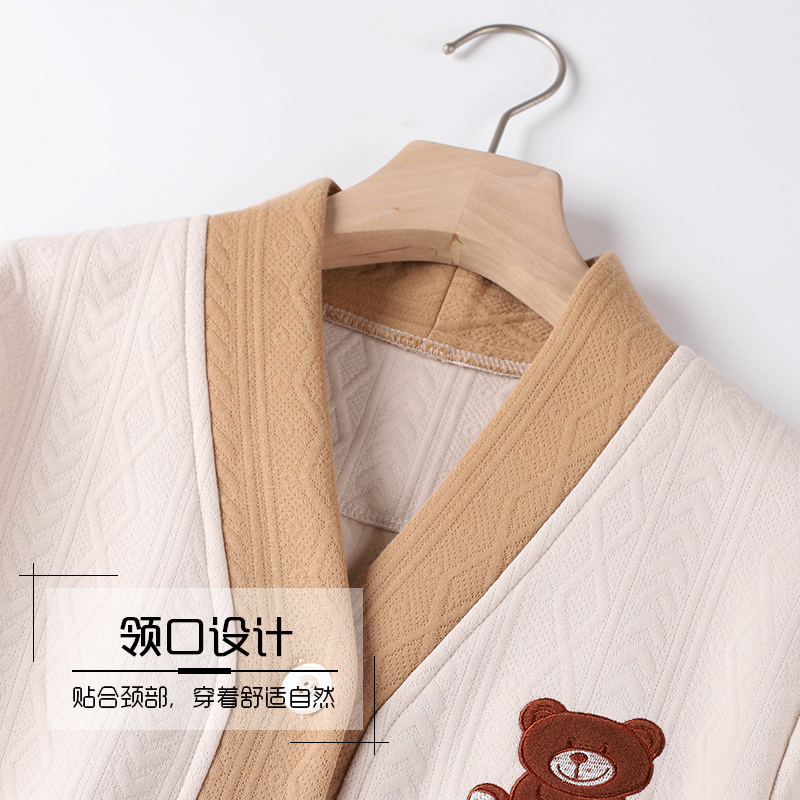 薄夹棉加厚家居服套装 空气棉春秋加厚纯棉长袖 夹层睡衣女款 秋冬季