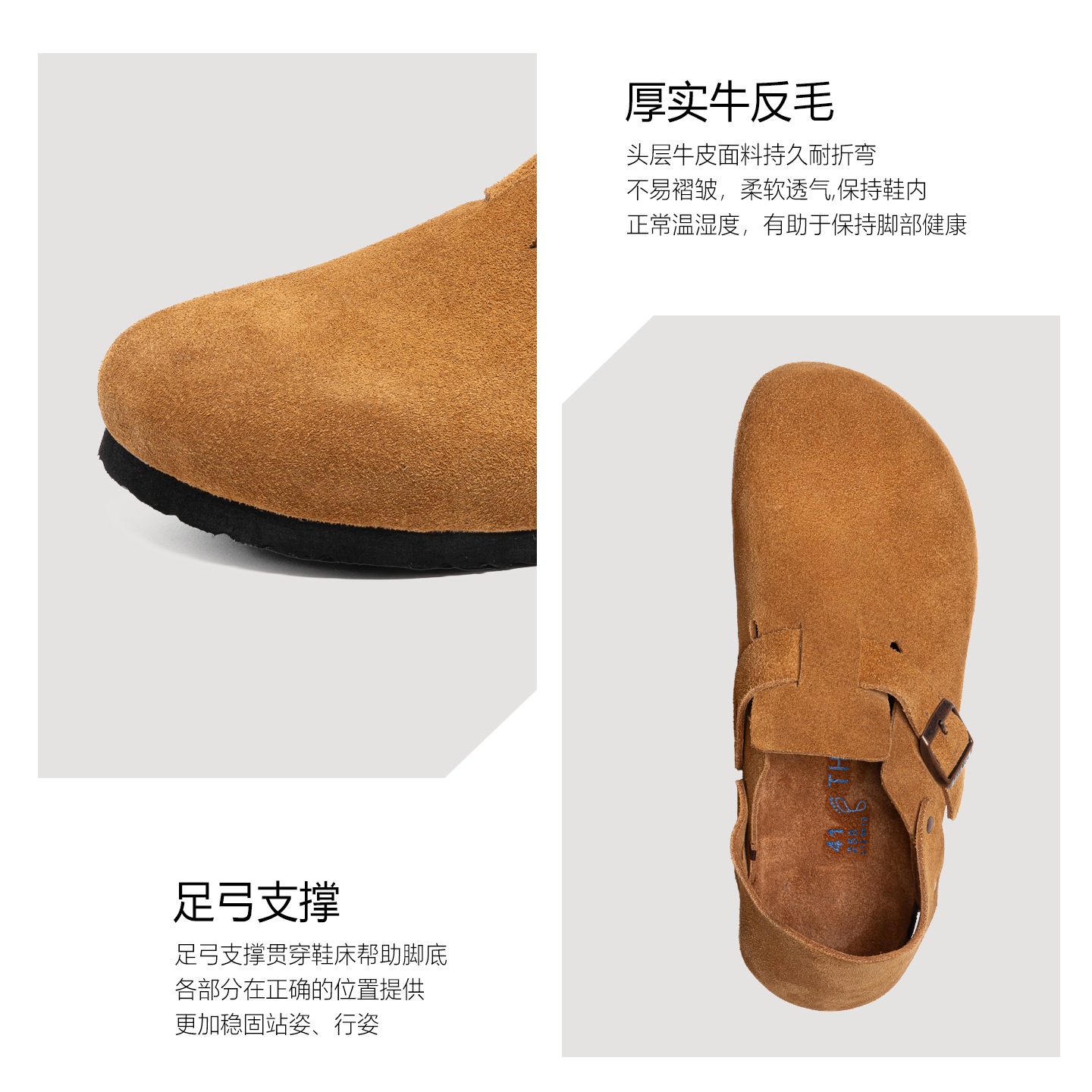 一脚蹬包头鞋 休闲真皮软木鞋 半包男 女半拖真皮2025新款 厚底勃肯鞋