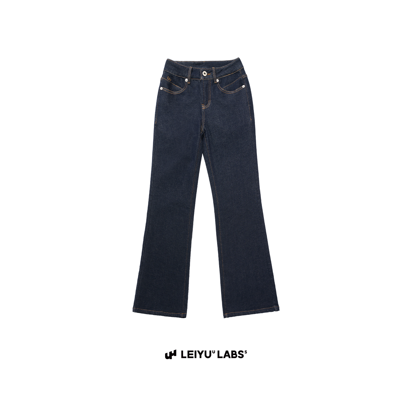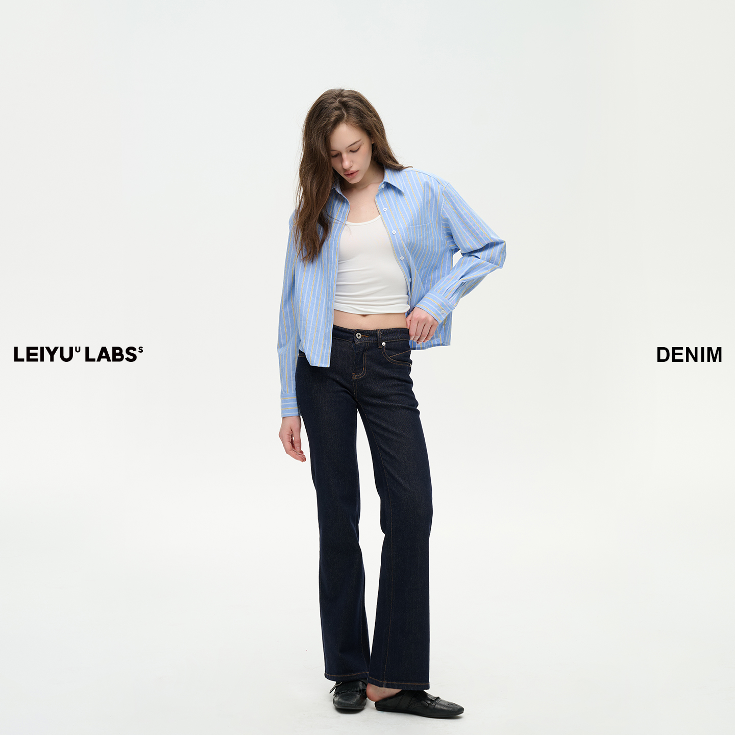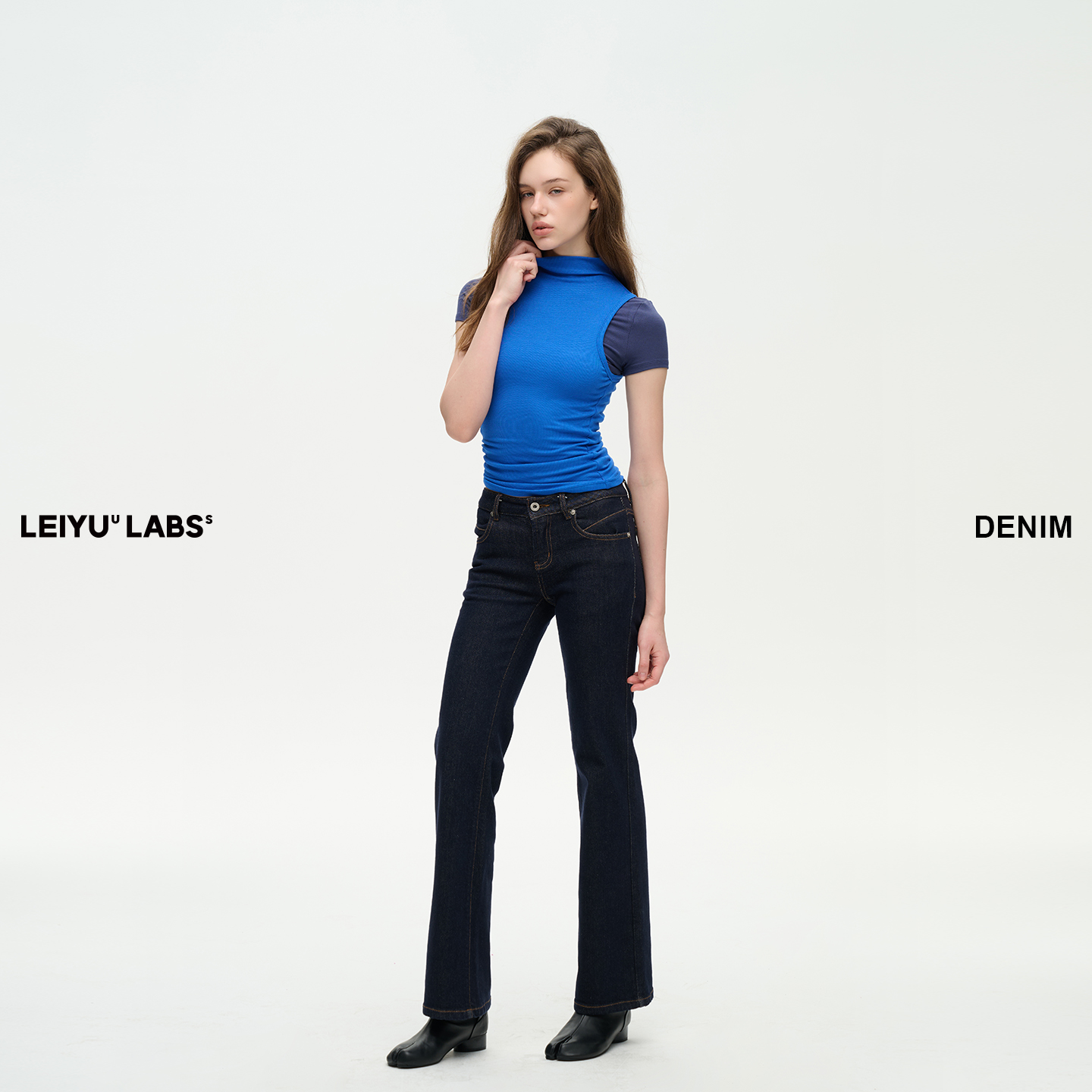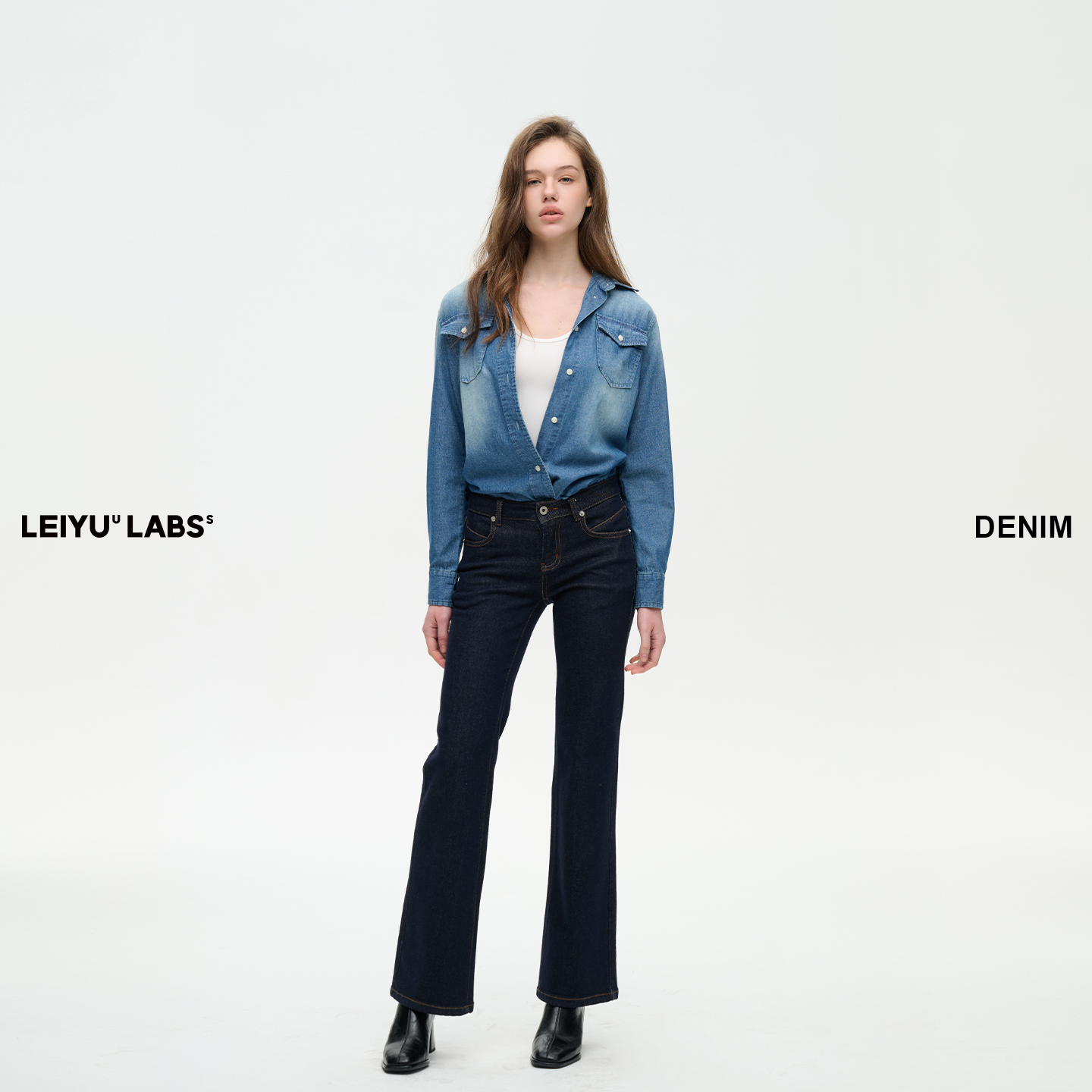 显瘦撞色长裤 LEIYU 修身 女冬2025年新款 LABS中低腰微喇原色牛仔裤