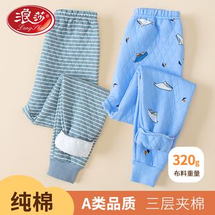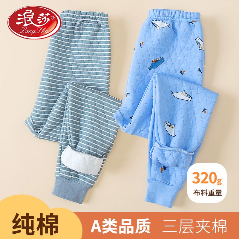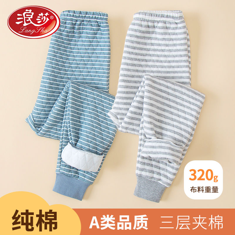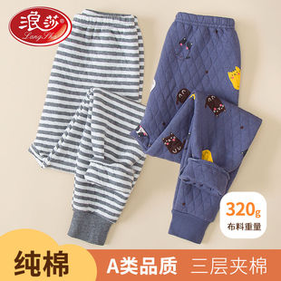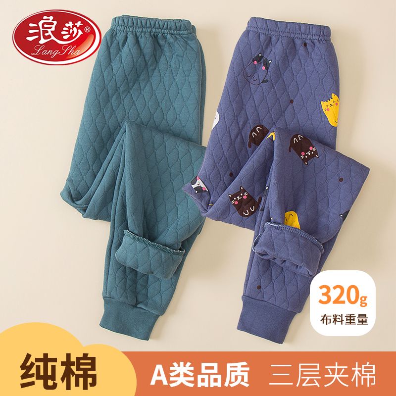 初中小学生线裤 男童女童秋裤 棉裤 浪莎秋冬三层加厚休闲儿童保暖裤