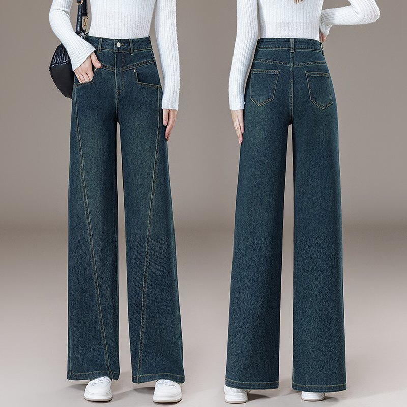 宽松显瘦直筒女长裤 时尚 2025秋冬新款 阔腿九分牛仔裤 拼接设计窄版