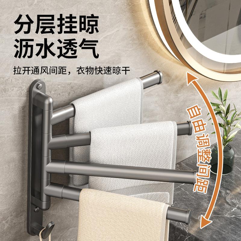 免打孔旋转毛巾杆卫生间毛巾架加厚加粗多功能浴室置物架浴巾架