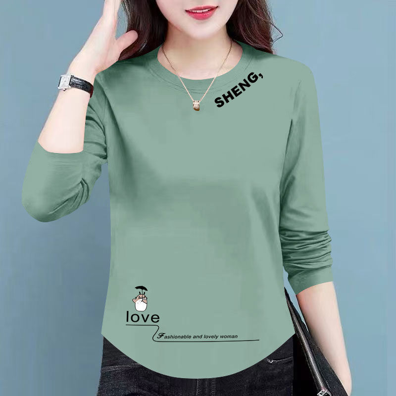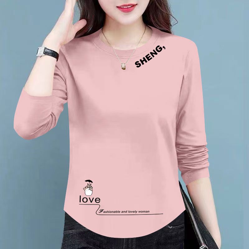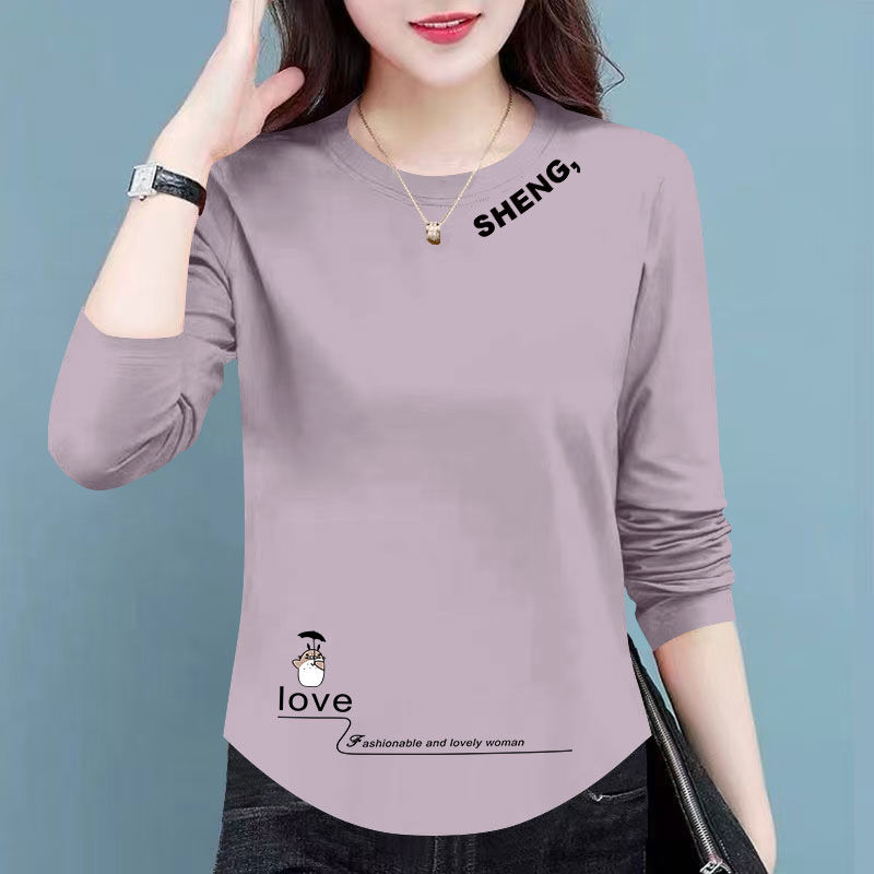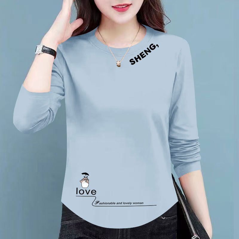 春秋纯棉弧形圆领长袖 潮流洋气百搭宽松显瘦印花ins上衣 T恤女时尚