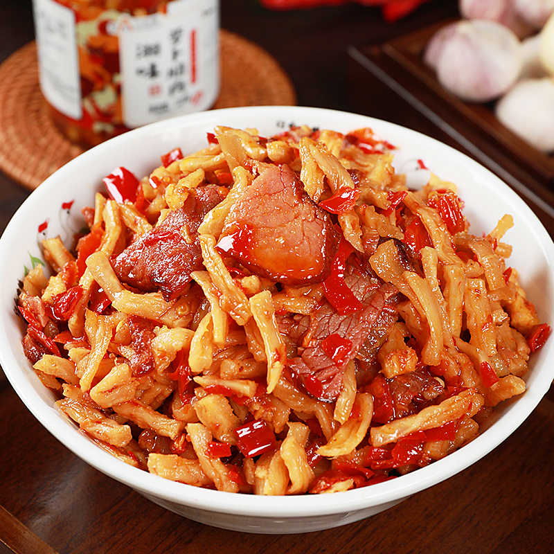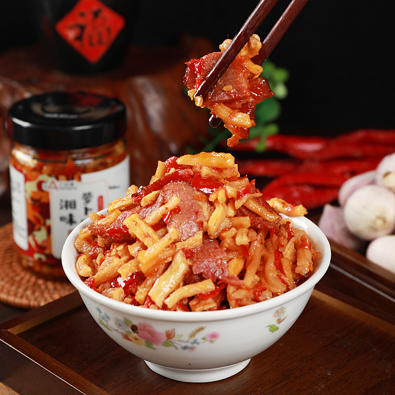腊肉萝卜干正宗湖南长沙特产烟熏萝卜干炒五花腊肉下饭菜开盖即食