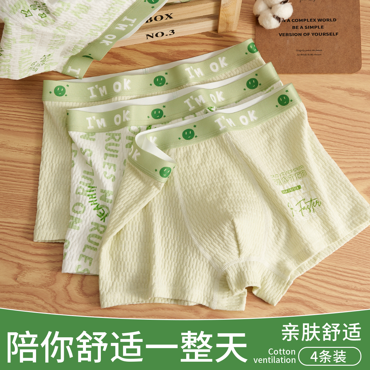 头纯棉四角裤 青少年内裤 男童发育期初高中生男孩加肥加大不勒短裤