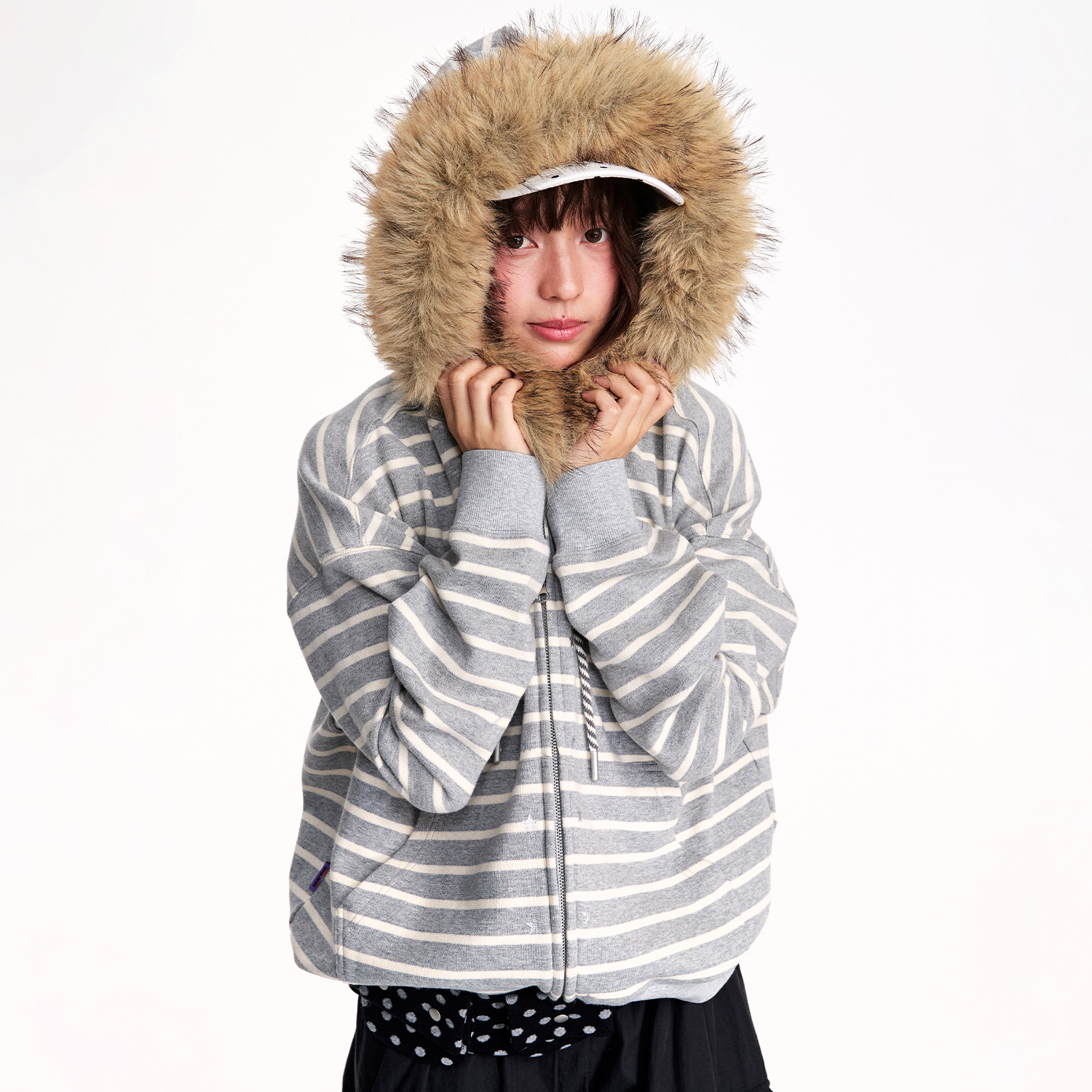 可拆卸毛领外套 秋季 江南先生NewJNXS美式 复古烫银星星条纹开衫