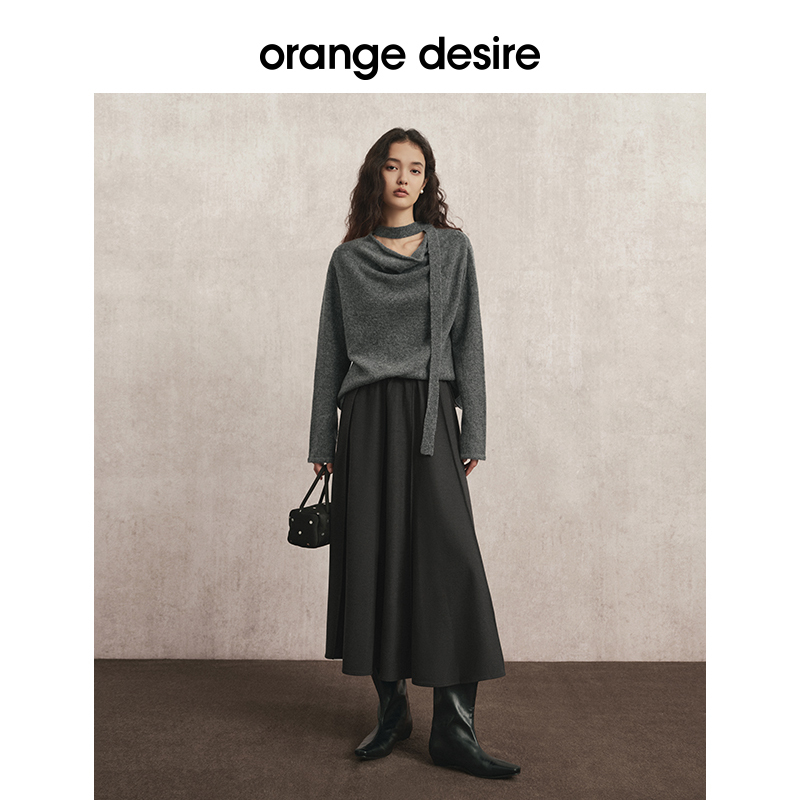 紫涵拼接花苞型半身裙女秋季 高腰显瘦休闲通勤百搭宽松中长裙 新款