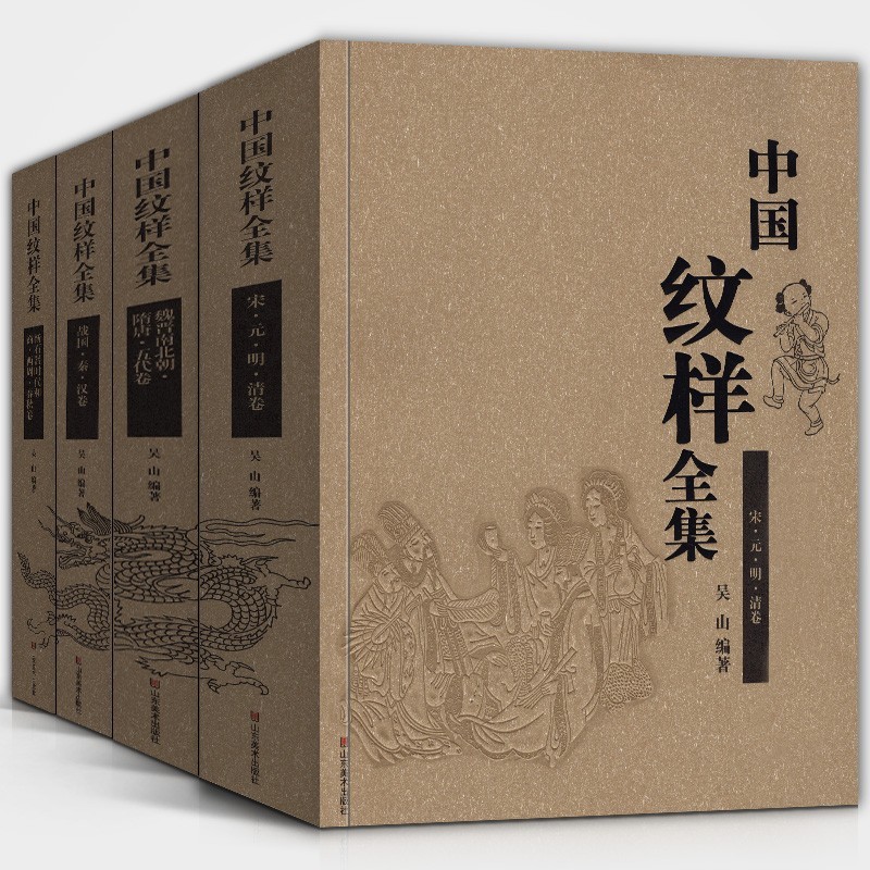 吴山 正版 社 礼盒装 古代手工剪纸刺绣花陶瓷青铜器漆器龙凤素材古建木工玉器雕刻 山东美术出版 中国纹样全集4册 工艺美术 包邮