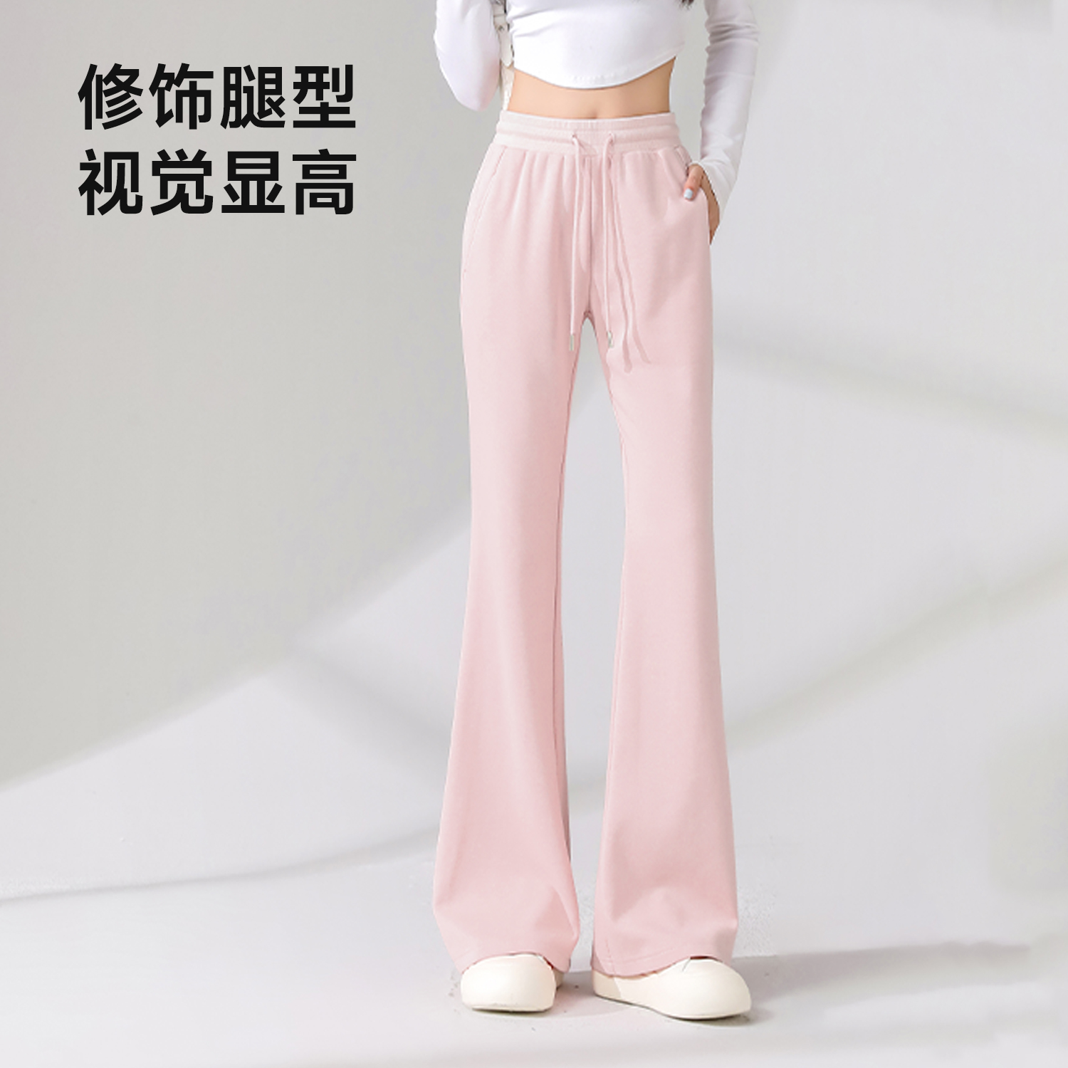 女2025新款 休闲裤 秋宽松大码 高腰喇叭裤 马蹄裤 班尼路黑色微喇裤