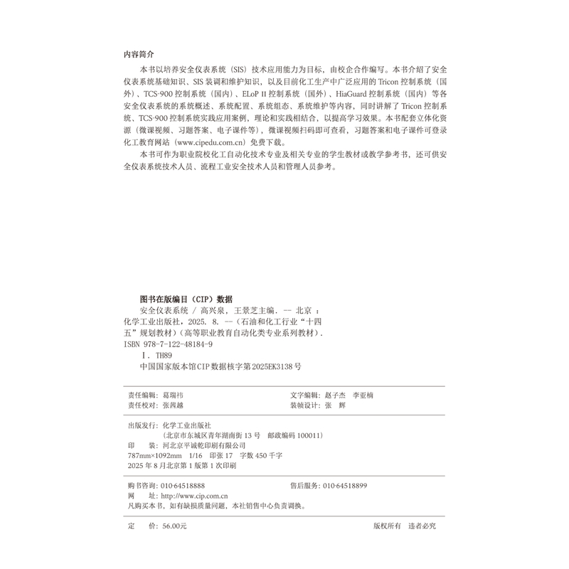 社新华书店正版 安全仪表系统 主编大学教材化学工业出版 王景芝 高兴泉