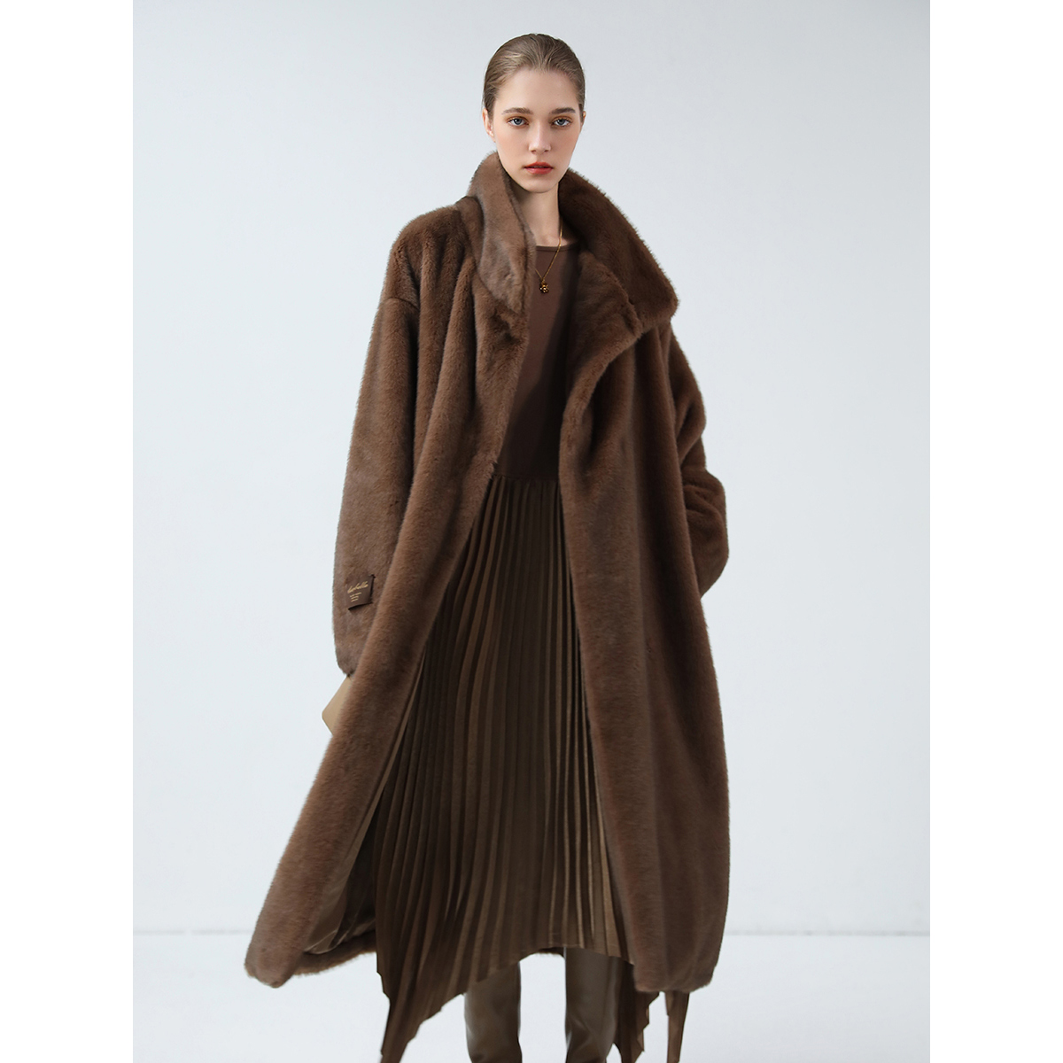 大衣FU3100 COCOBELLA仿天鹅绒整貂环保皮草外套女长款 双11预售