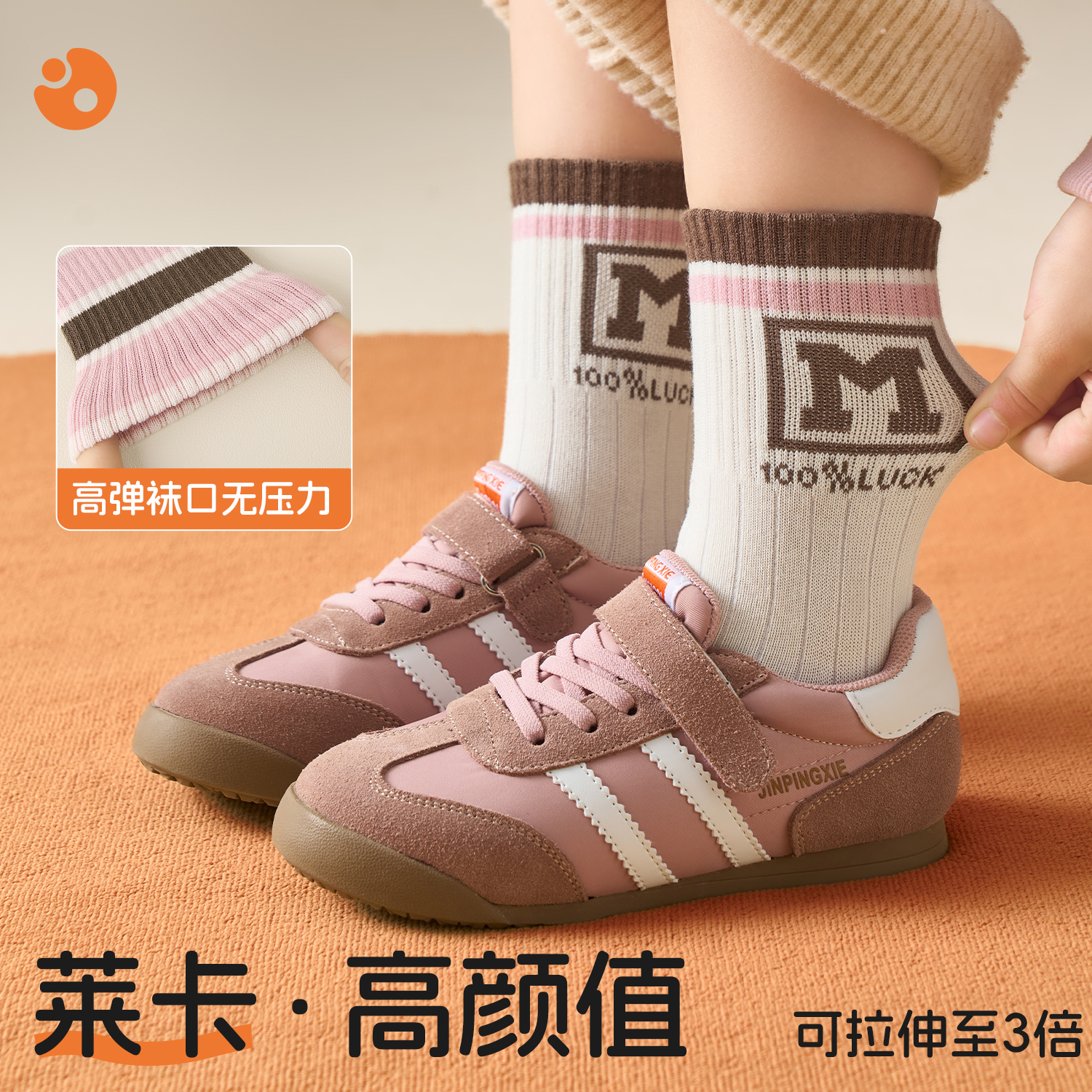 女童袜子春秋款 中筒小女孩大童运动无骨袜抗起球 纯棉a类儿童秋季
