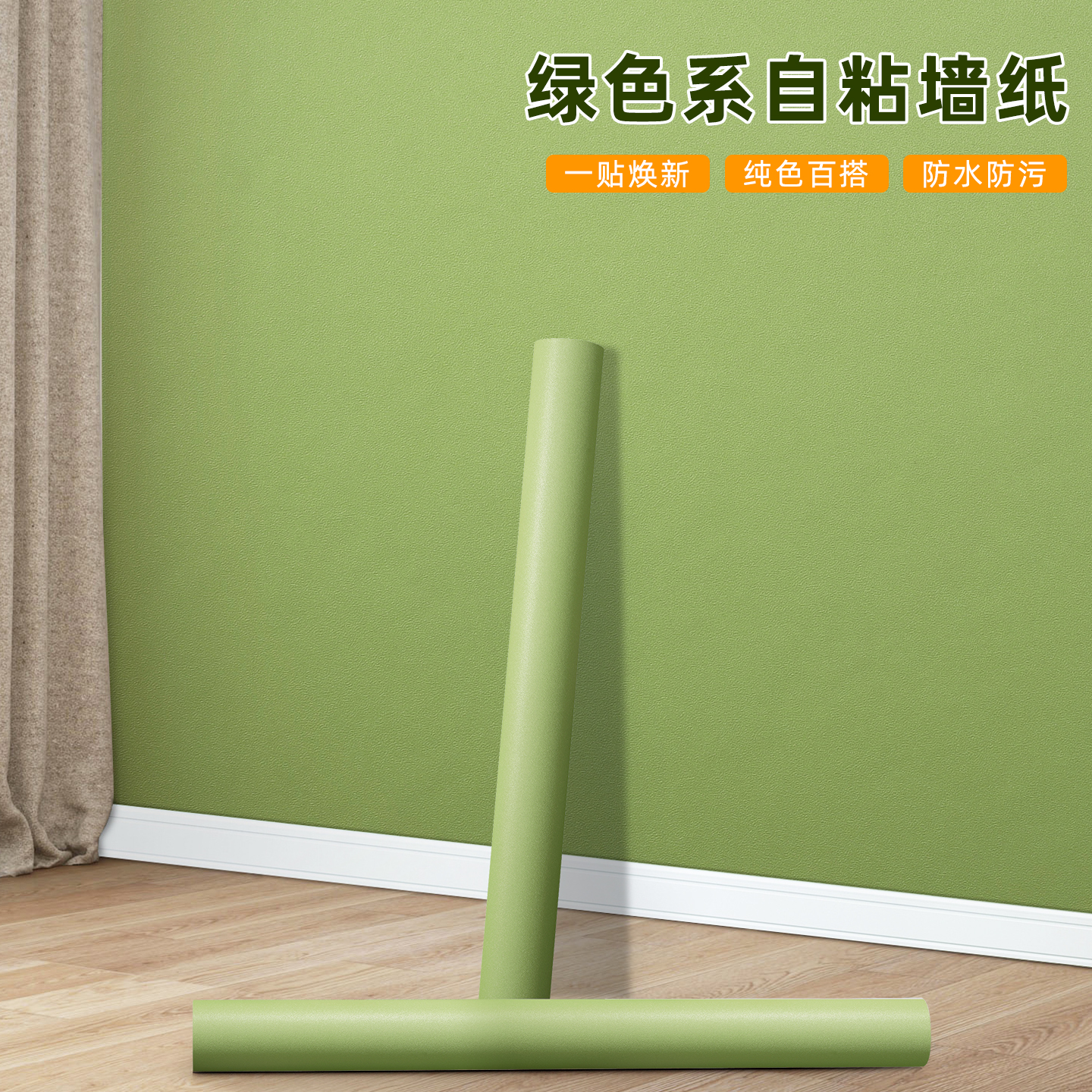 法式 饰壁纸 牛油果绿色墙纸客厅卧室背景墙自粘贴纸防水防潮墙面装