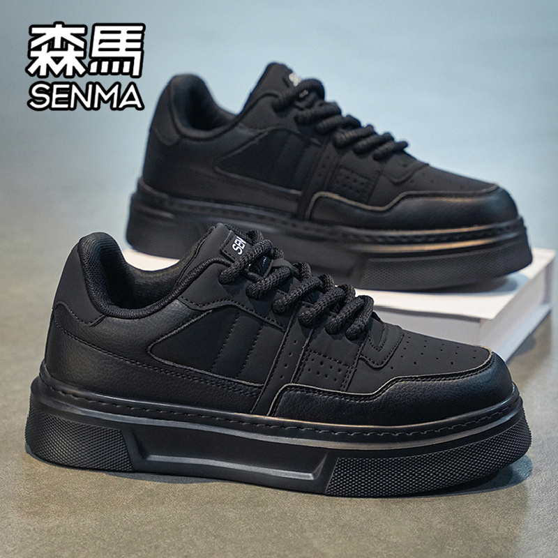 厚底增高防水防滑工作潮鞋 森马男鞋 男士 百搭休闲运动黑色板鞋 秋季